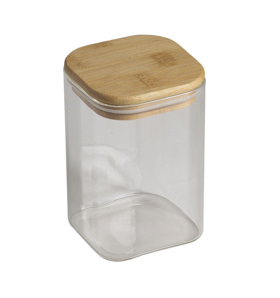 Barattolo in vetro portaconfetti con tappo in legno - cm.6x6xh.9