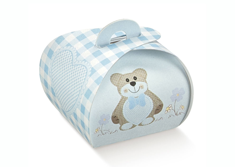 Scatola automontante con maniglia in cartoncino teso oppure pvc trasparente, per contenere oggetti, prodotti dolciari, oggetti, articoli regalo - Misure mm.55x50x50