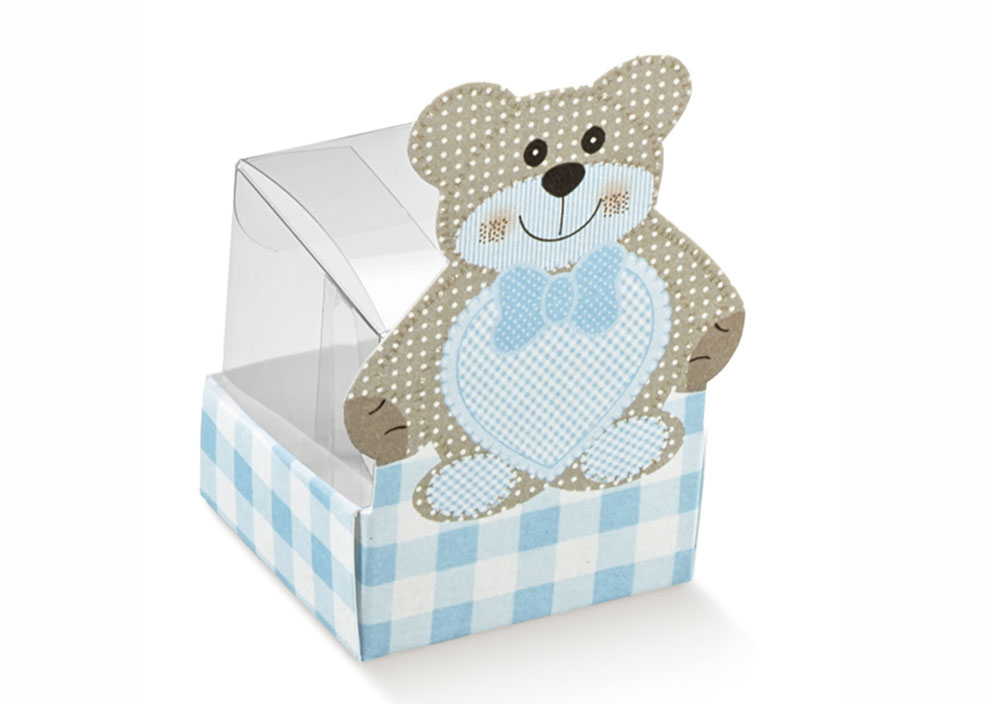 Scatolina pvc e cartoncino orsetto cielo porta confetti