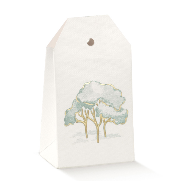 Scatola in cartoncino teso per confezionare confetti, prodotti dolciari, piccoli oggetti decoro intrecci verde - cm.5,5x3,5x10