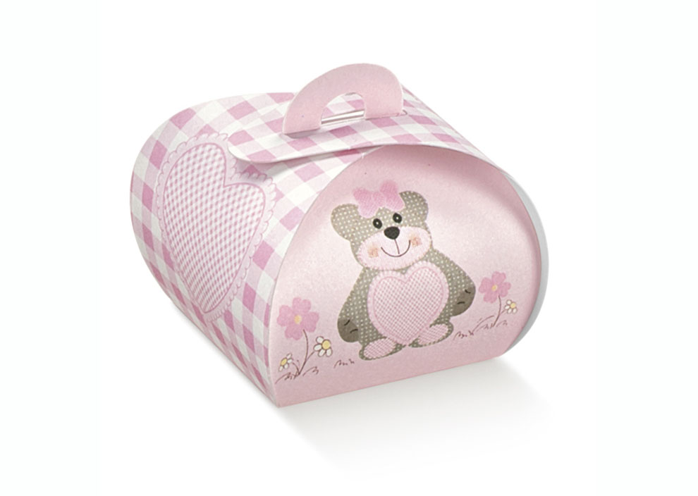 Scatola automontante con maniglia in cartoncino teso oppure pvc trasparente, per contenere oggetti, prodotti dolciari, oggetti, articoli regalo - Misure mm.40x40x35