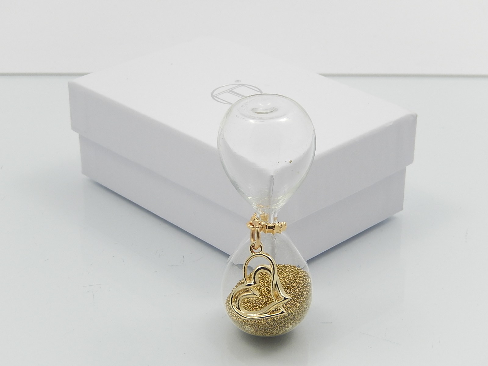 Clessidra in vetro cm.h.8 con applicazione cuore dorato