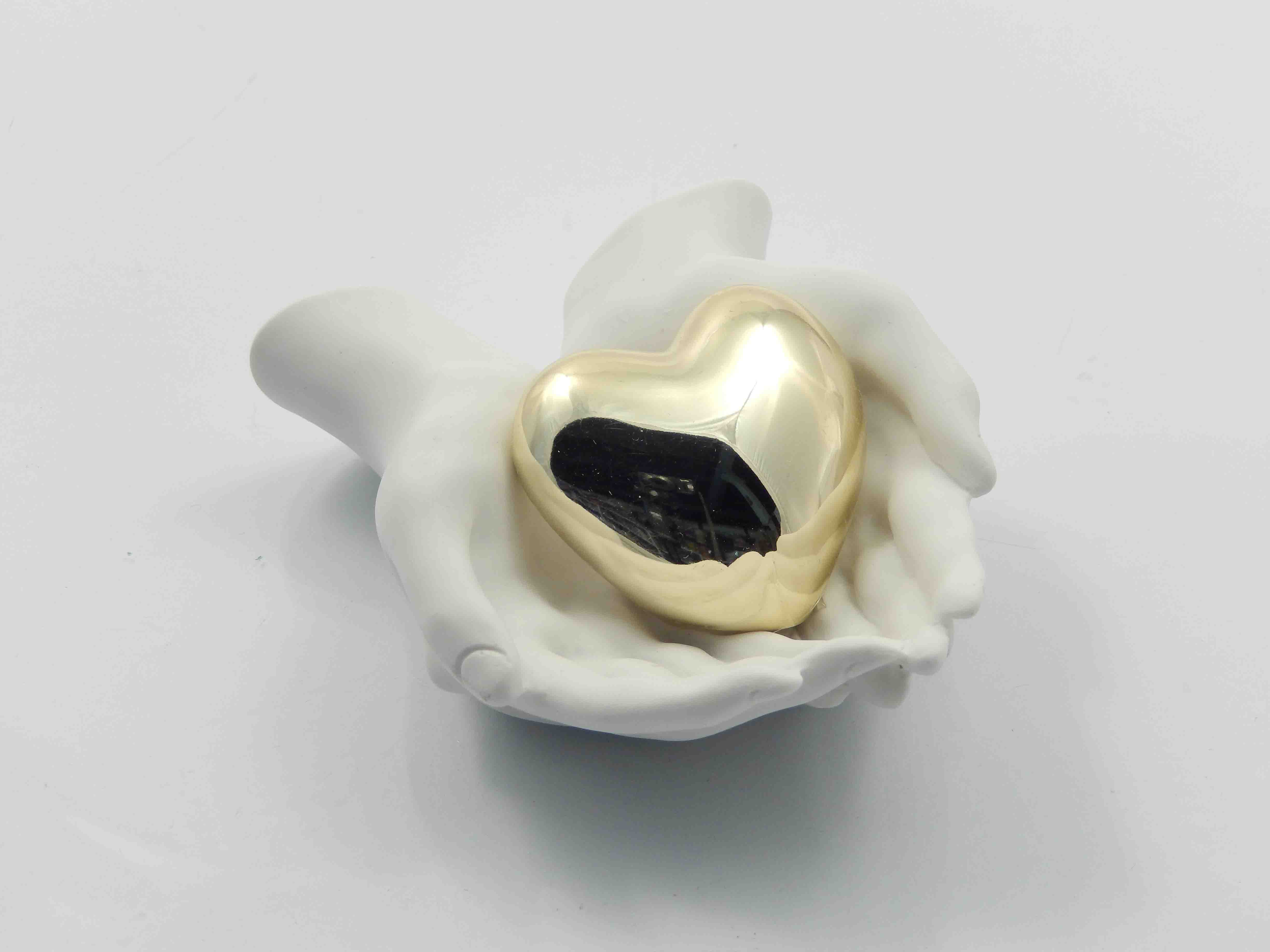 Mani in resina bianca con cuore dorato - cm.12x9xh.5 - incluse di astuccio di cartone