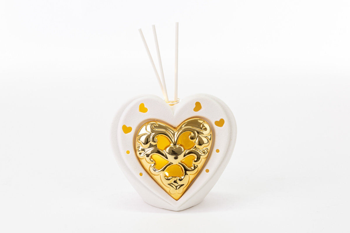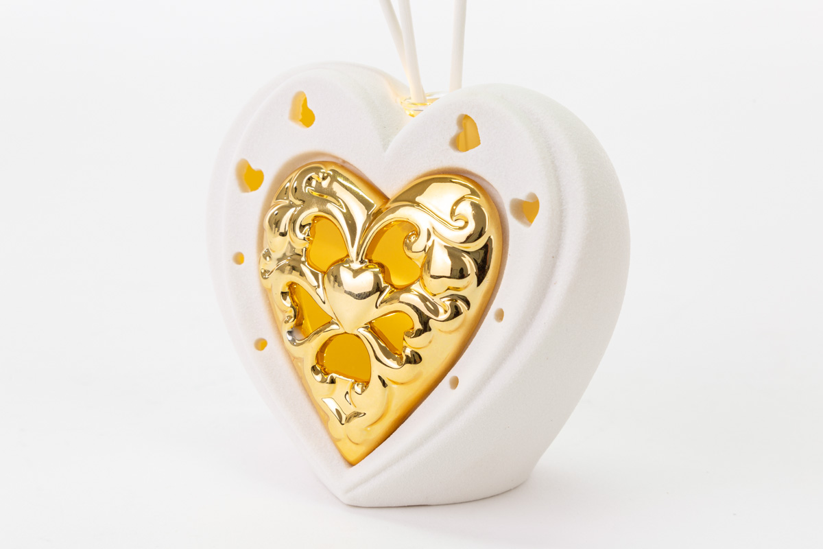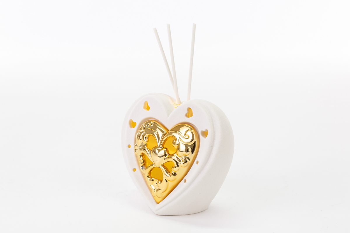 Profumatore in porcellana modello cuore con luce led con kit essenza e astuccio regalo inclusi - cm.11,5x6xh.10