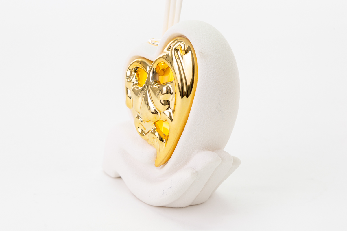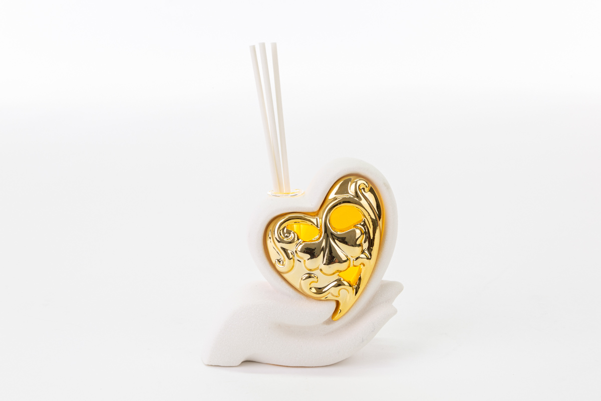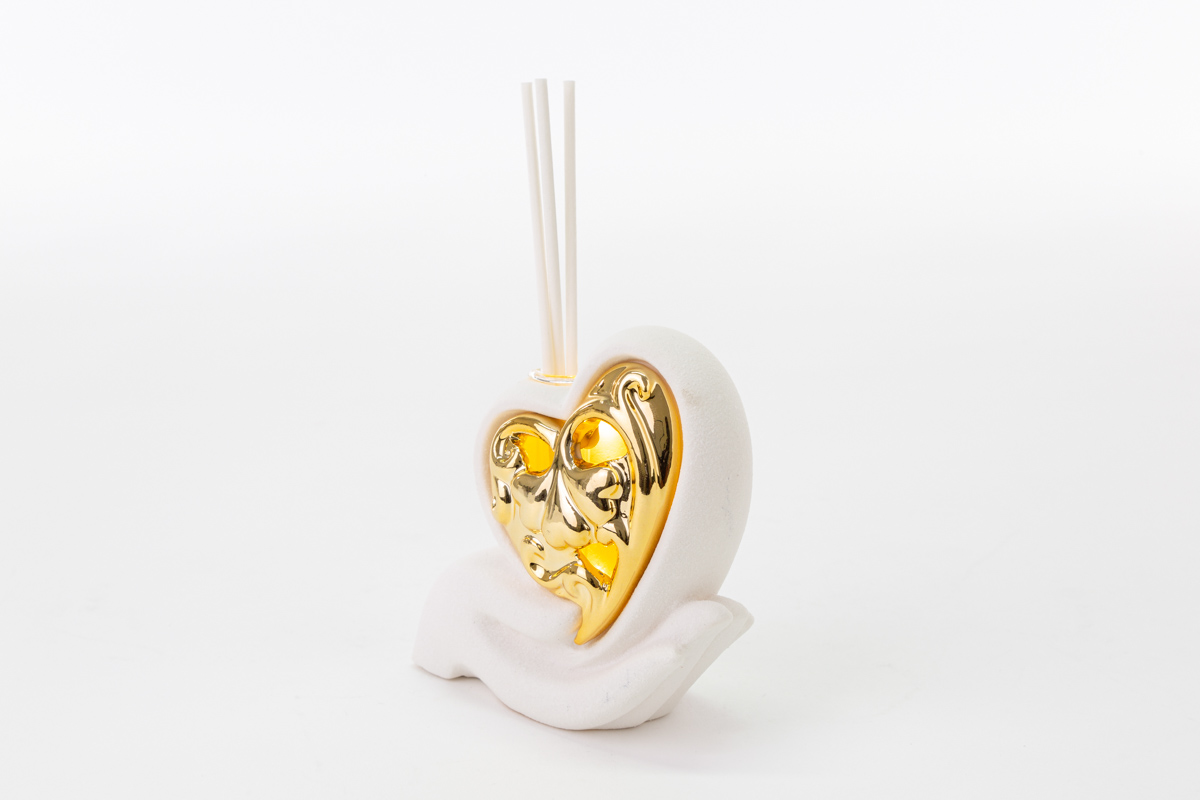 Profumatore in porcellana modello cuore con luce led con kit essenza e astuccio regalo inclusi - cm.9,5x4,5xh.10