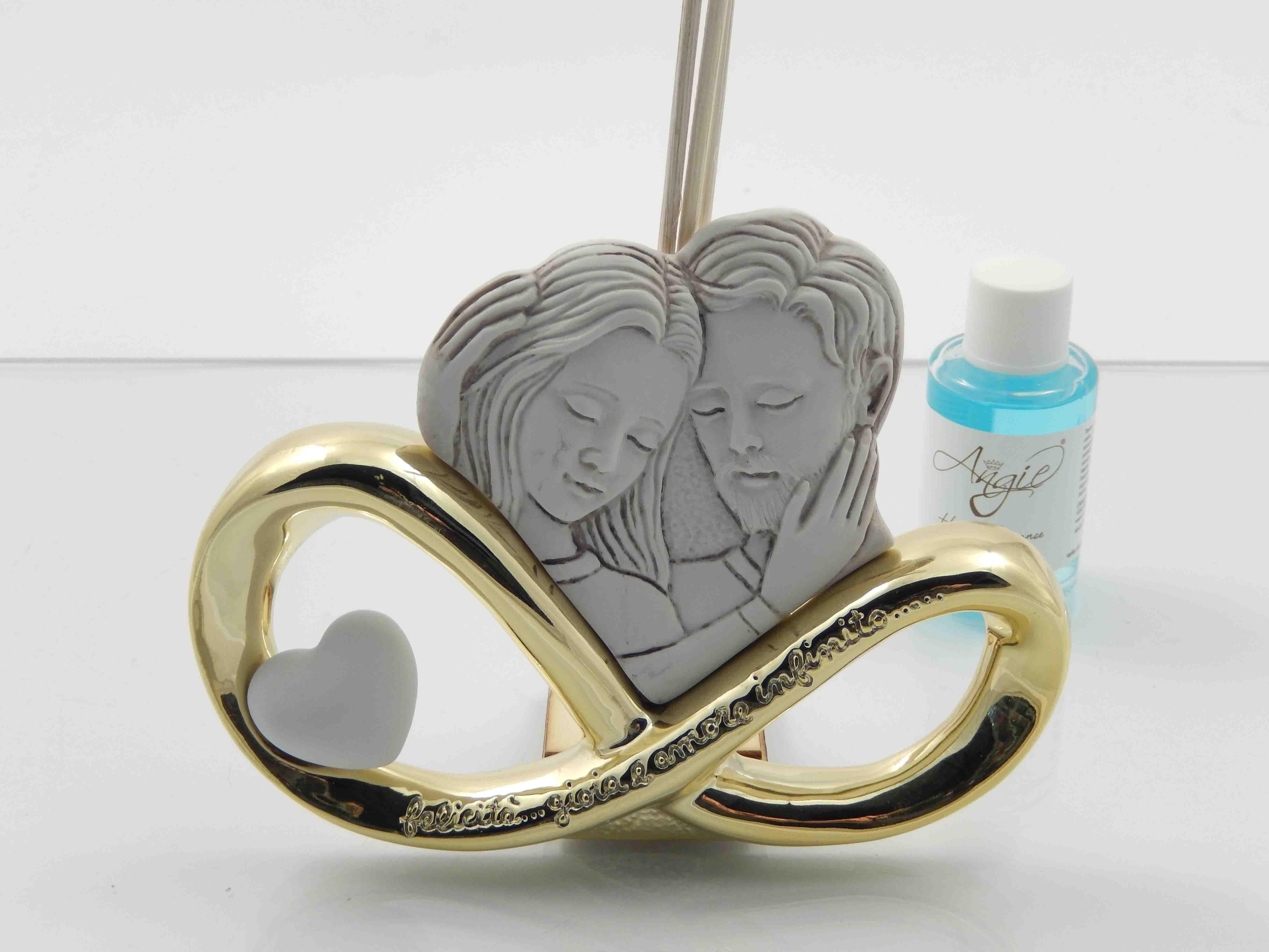 Profumatore resina coppia innamorati su nodo d'amore oro - cm.15xh.11 - incluso di astuccio di cartone ed essenza