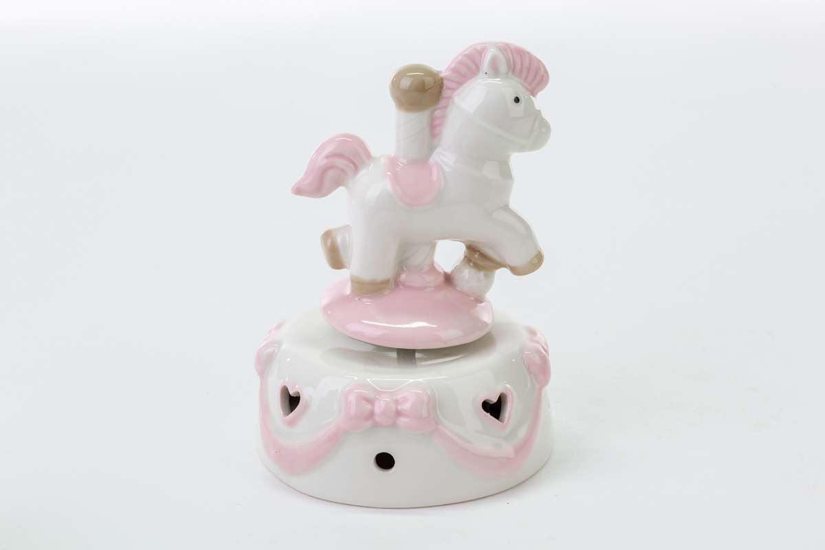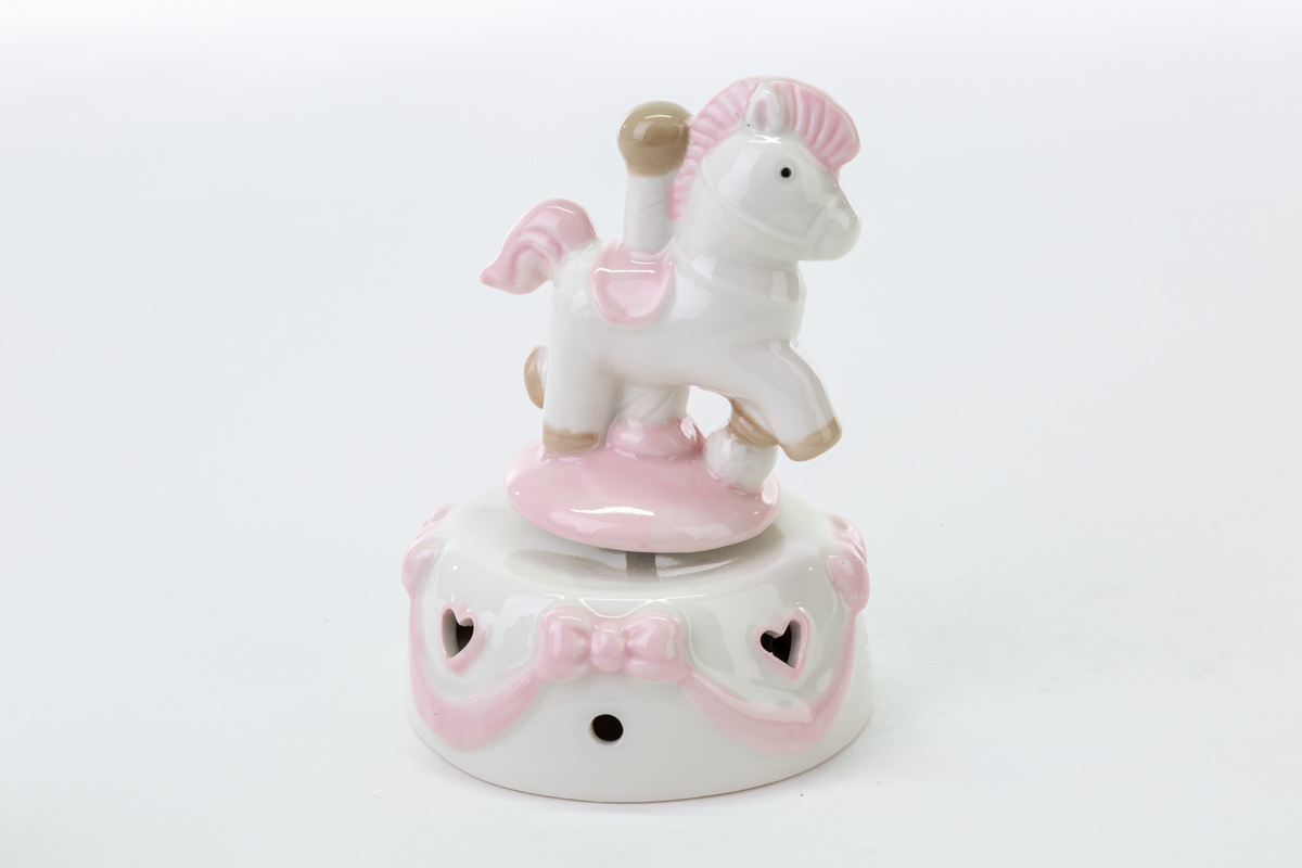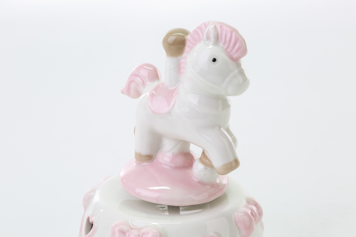 Cavalluccio con carillon in porcellana di colore rosa cm.9x9xh.13