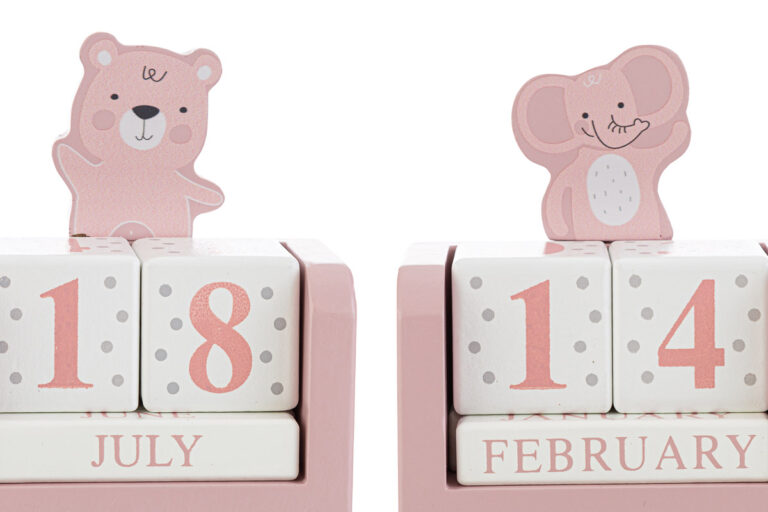 Datario in legno di colore rosa