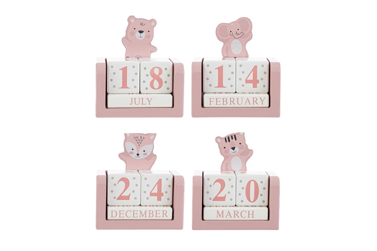 Datario in legno di colore rosa 4 soggetti assortiti - cm.8x4,5xh.9 - incluso di shopper (il prezzo è riferito al singolo pezzo)