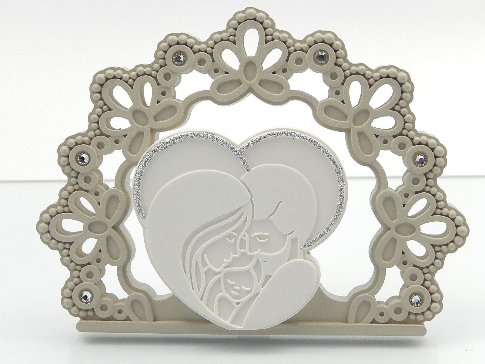 Icona media Sacra Famiglia in resina colore nocciola - misure cm.13x18 - inclusa di astuccio regalo in cartone