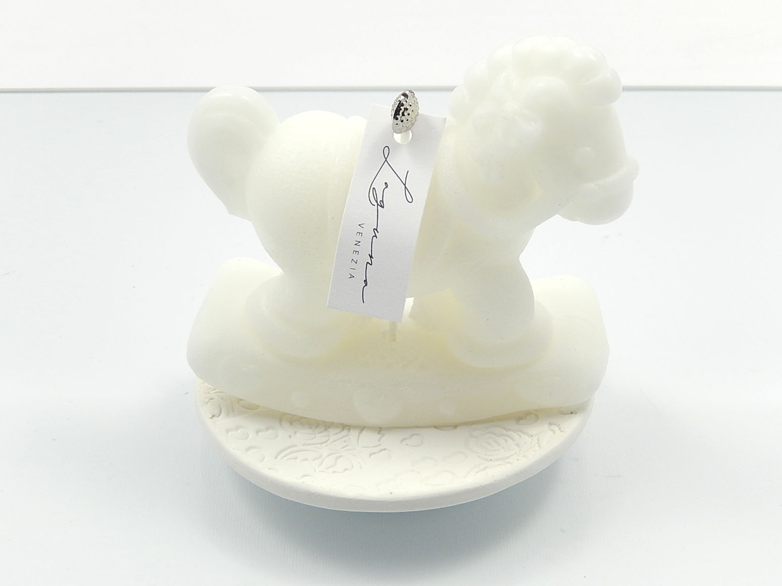LAGUNA-Candela cavallo bianco con piatto  h.cm.10 - incluso di astuccio