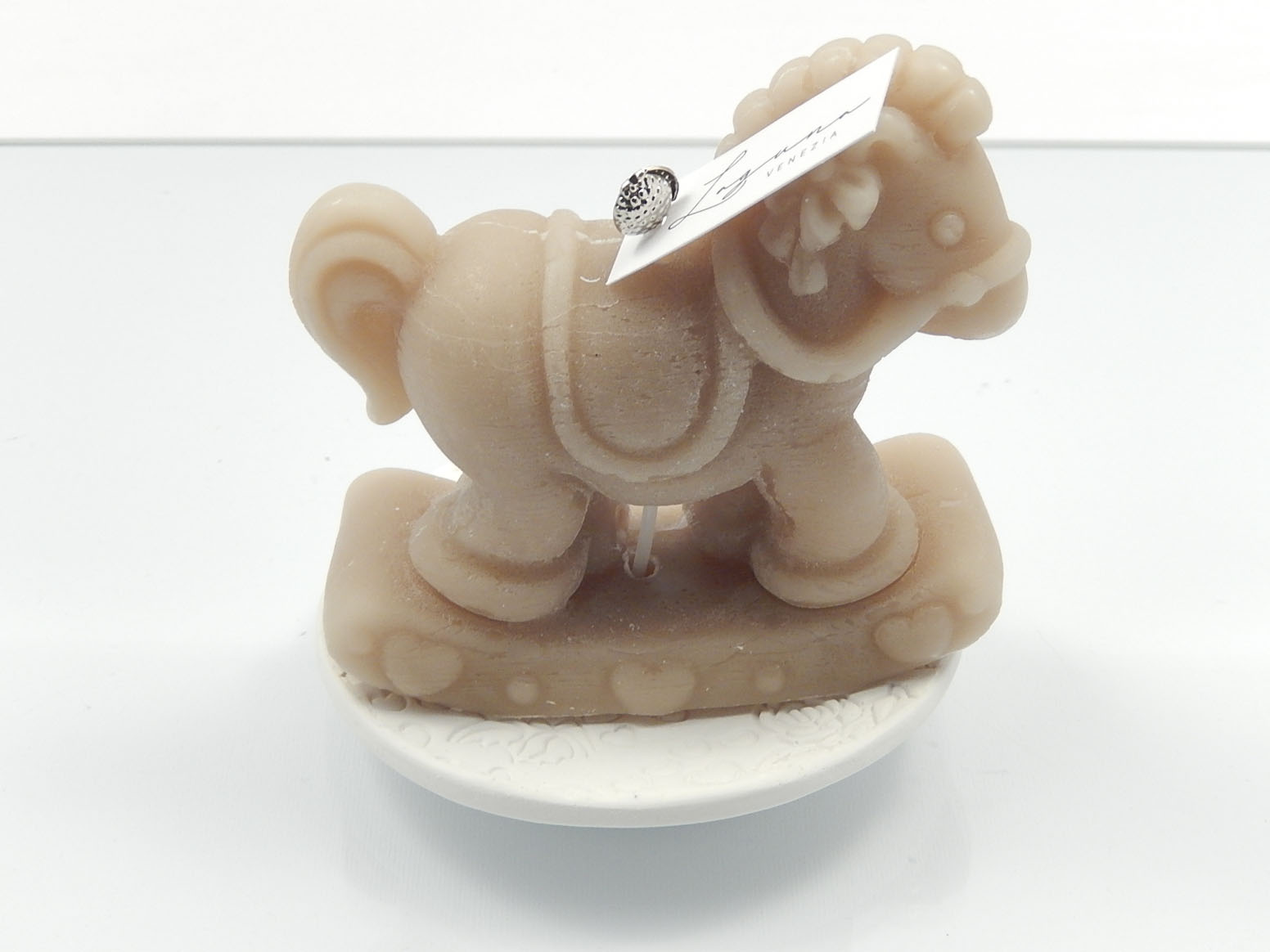 LAGUNA-Candela cavallo tortora con piatto  h.cm.10 - incluso di astuccio