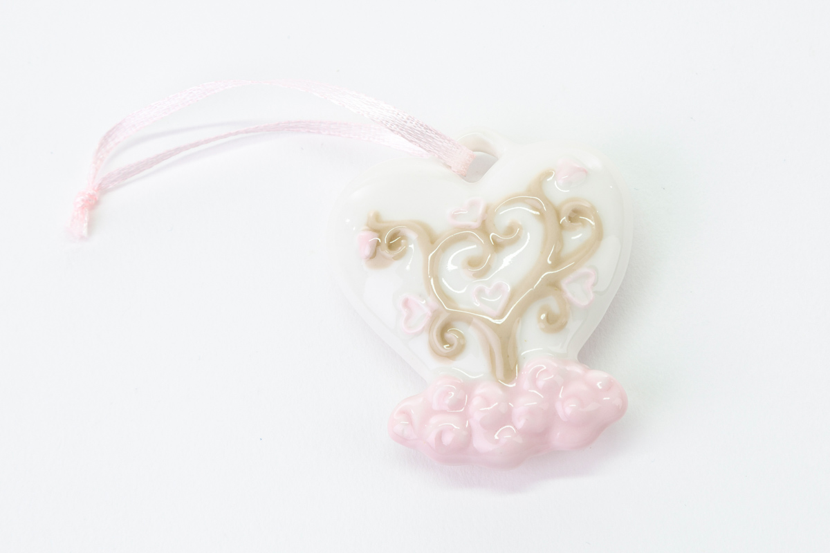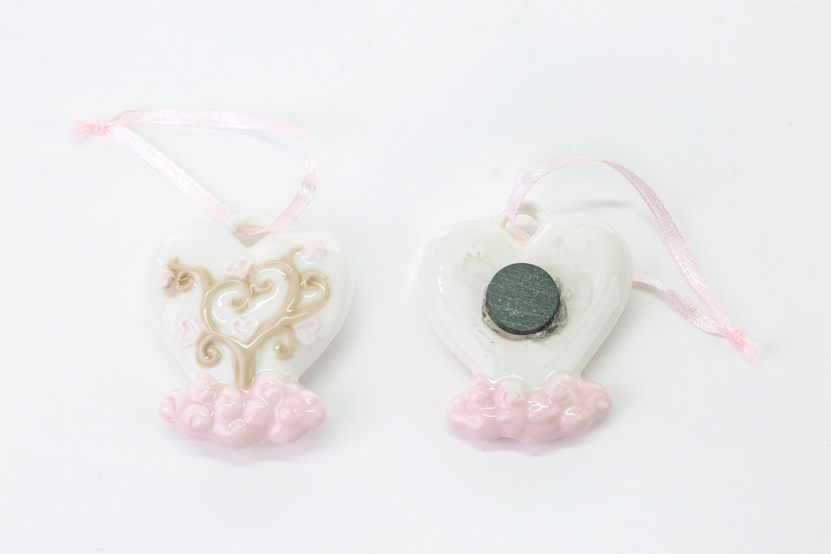 Magnete appendino cuore in porcellana di colore rosa