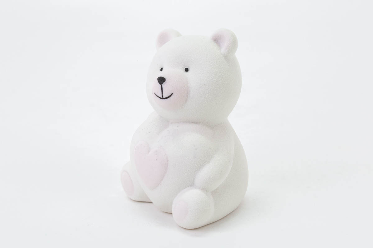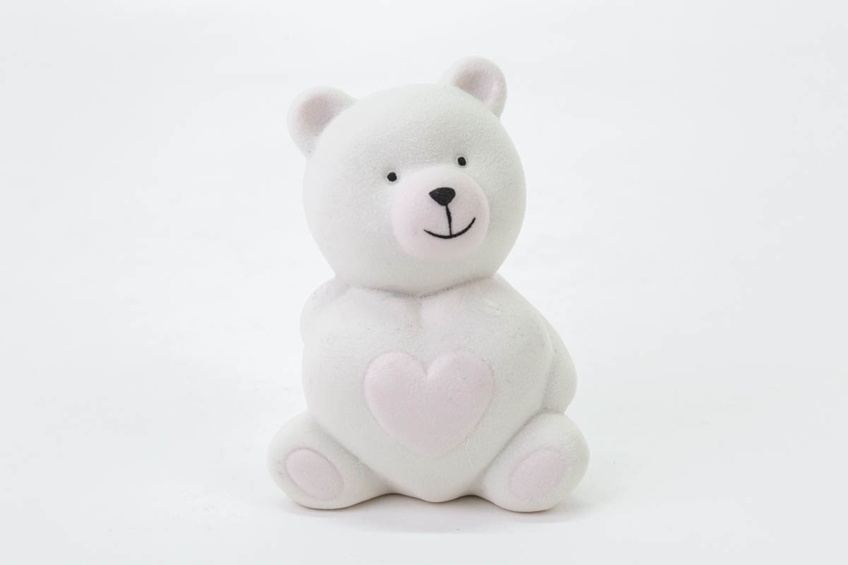 Orsetto in porcellana con cuore colore rosa - cm.6,5xh.8