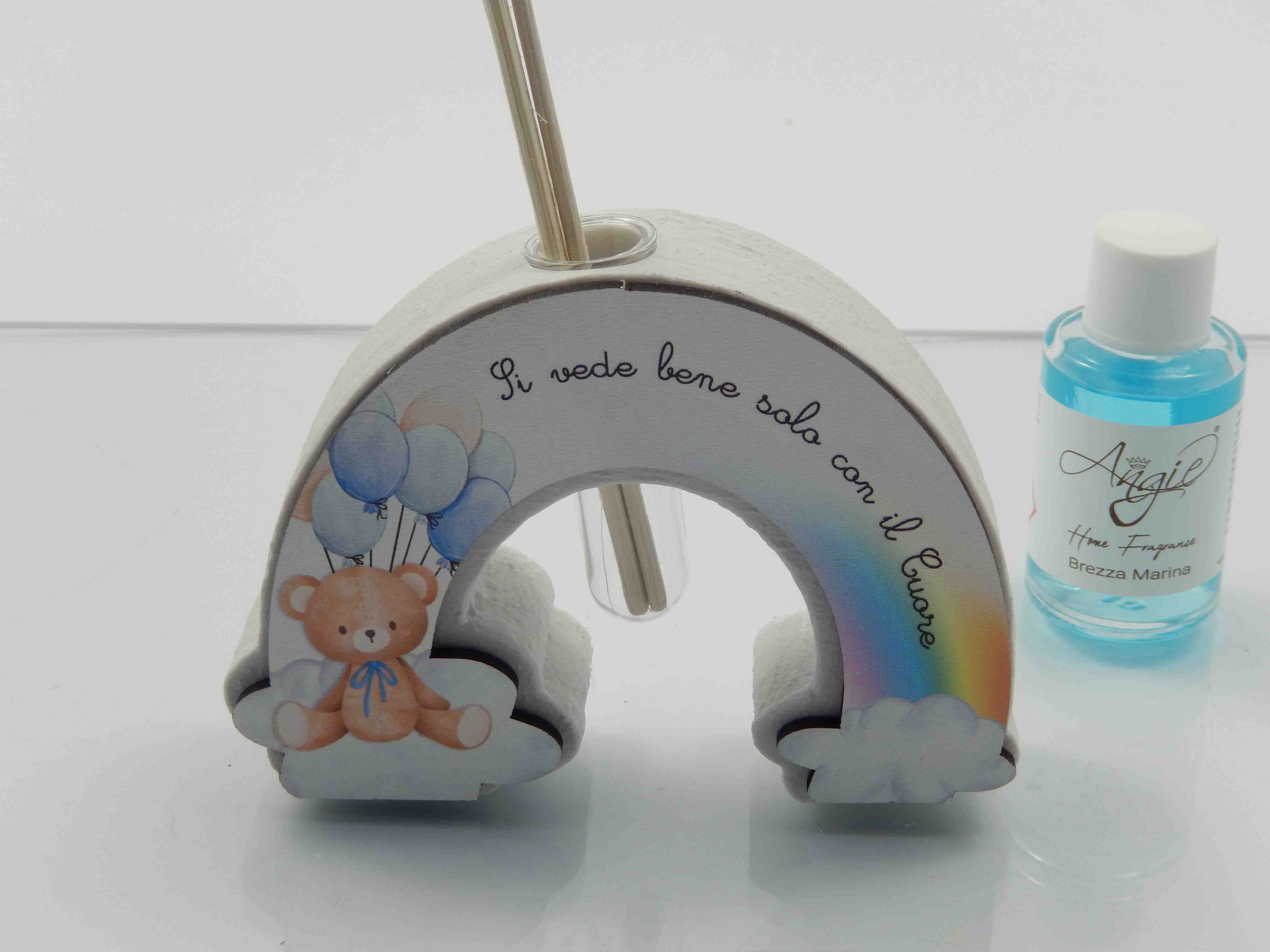 Profumatore in resina arcobaleno orsetto azzurro - cm.12x3xh.9 - incluso di astuccio ed essenza