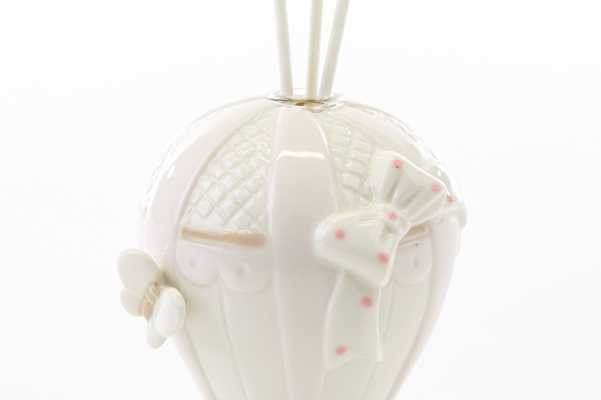 Profumatore mongolfiera in porcellana di colore rosa cm.8xh.11,5 - incluso di astuccio regalo e kit essenza