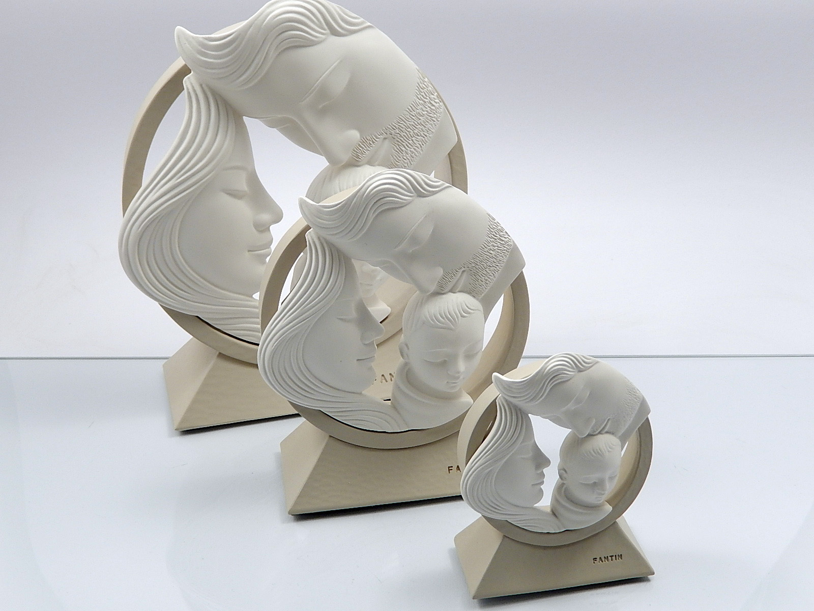 Sacra Famiglia in resina bianca con base tortora - disponibile in tre diverse misure - incluso di astuccio regalo di cartone bianco
