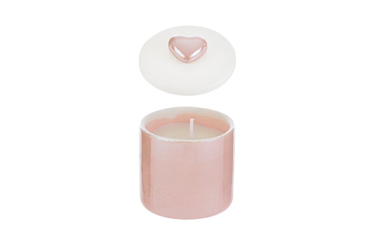 Scatola candela cuore soia in porcellana di colore rosa - cm.16,5x6,5xh.7 - incluso di atuccio