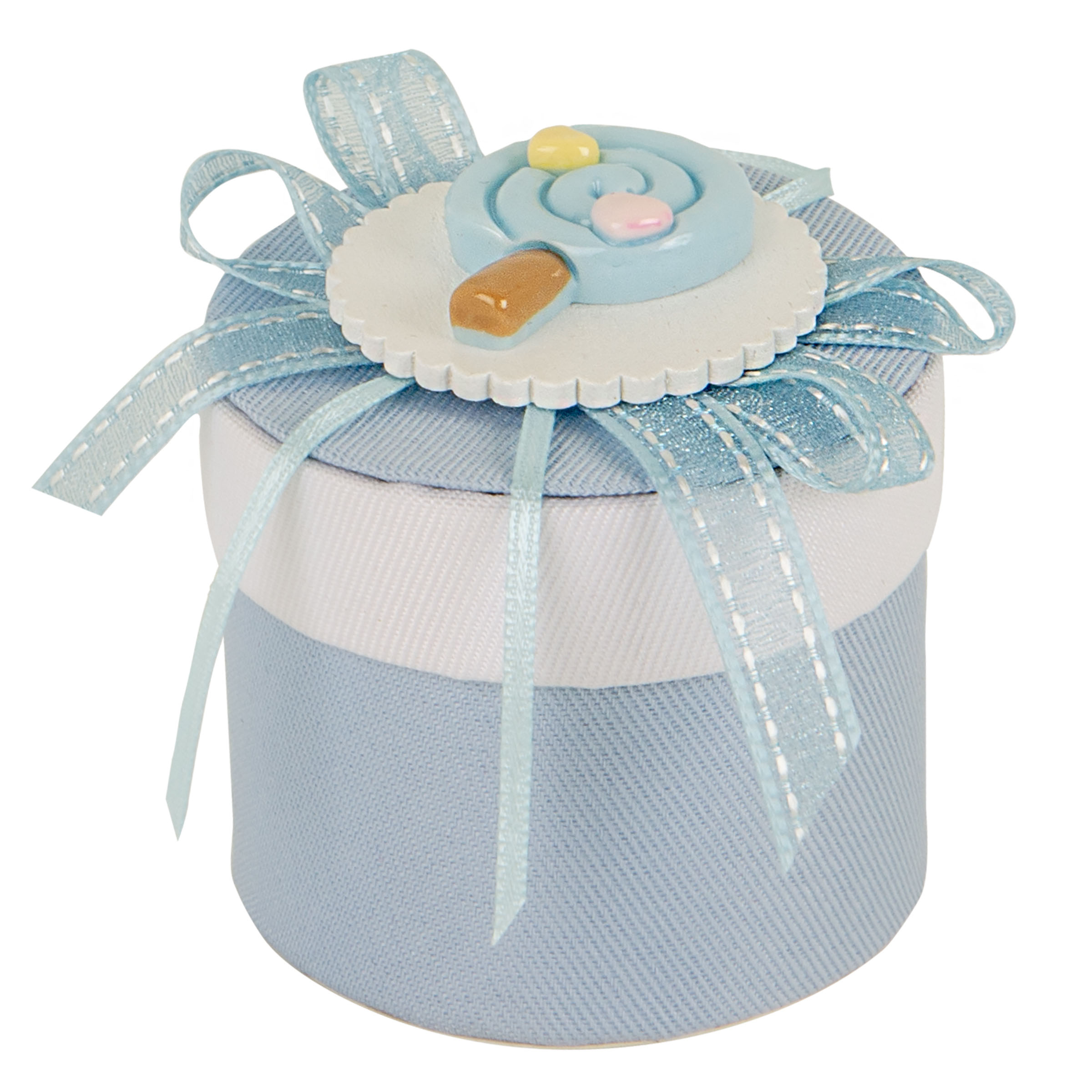 Scatolina in stoffa celeste portaconfetti ø cm.6xh.6