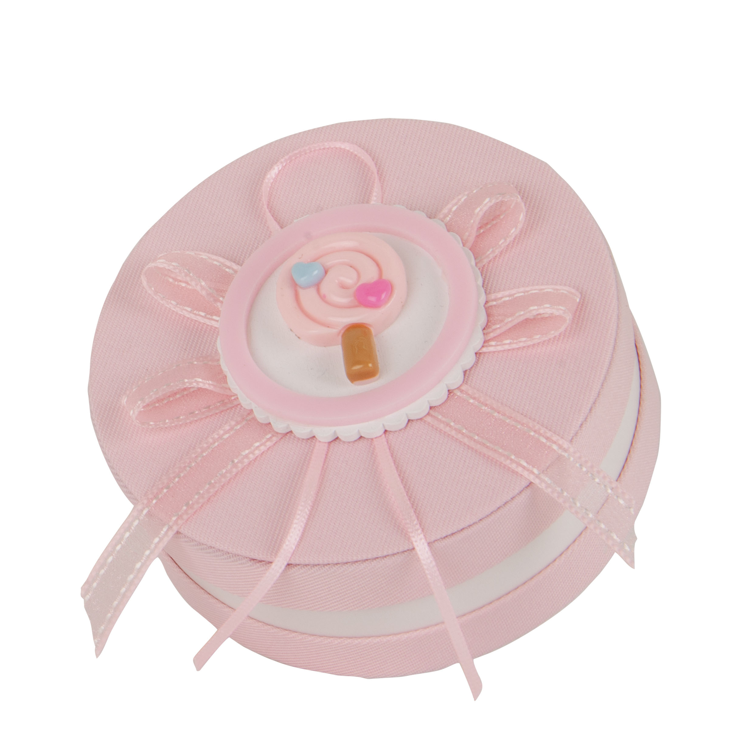 Scatolina tonda in stoffa rosa portaconfetti