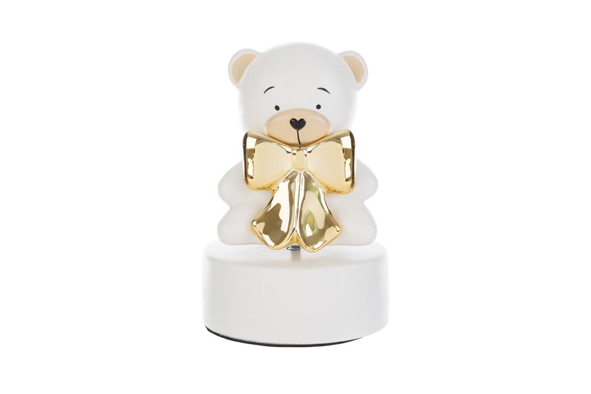 Carillon orsetto in porcellana di colore bianco - ø cm.9xh.14 - inclusa di shopper