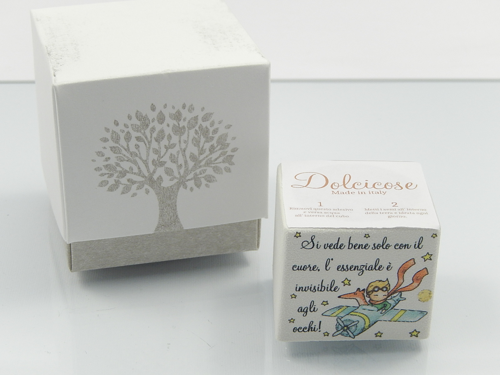 Dolcicose Cubo fioritura kit in resina Piccolo Principe - misure cm.5x5 - compreso di astuccio, portaconfetti in pvc