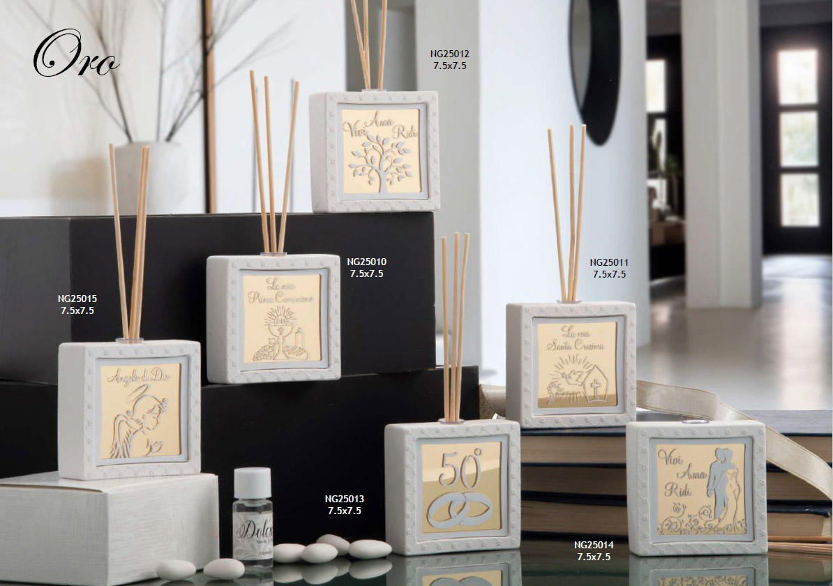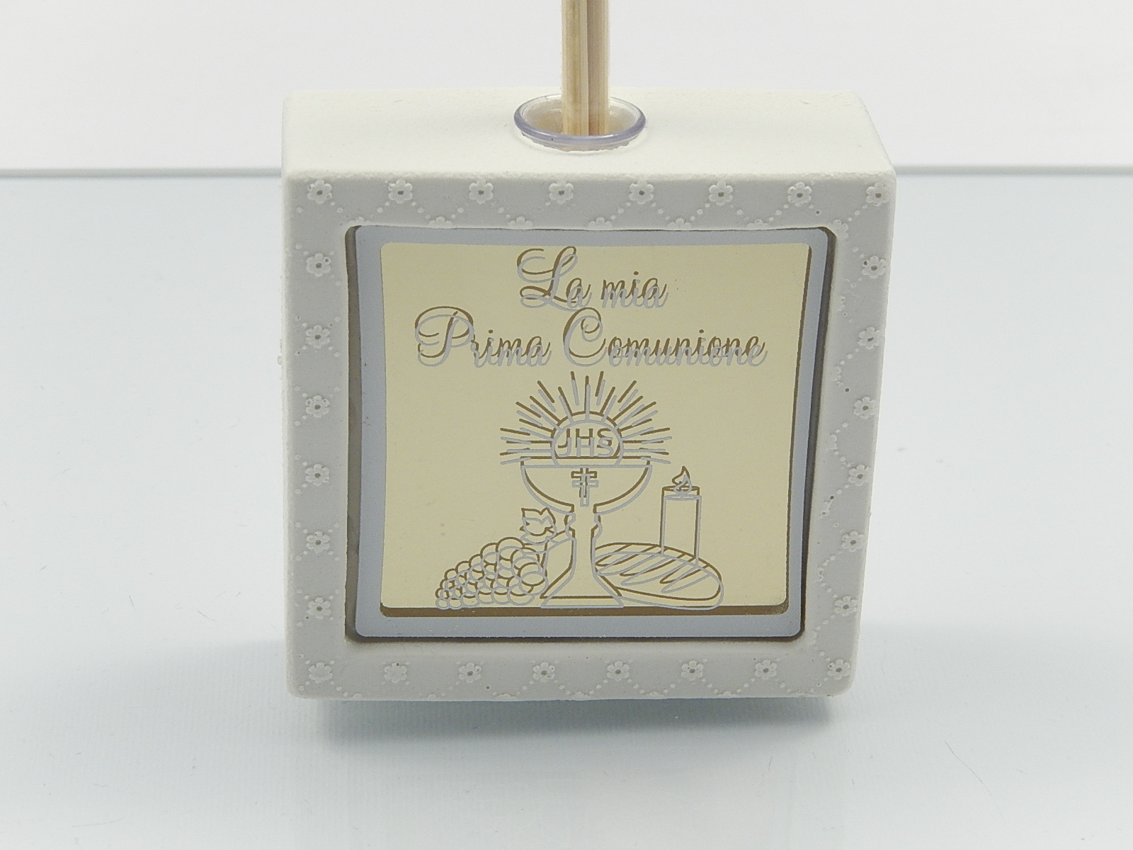 Dolcicose Diffusore oro modello comunione in resina e plexiglass oro - misure cm.7,5x7,5 compreso di astuccio, portaconfetti in pvc ed essenza