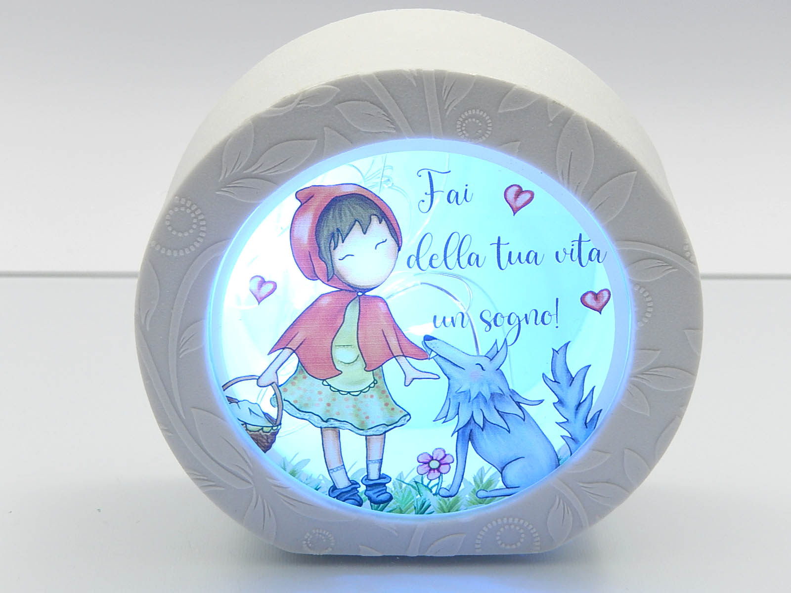 DOLCICOSE-Lampada led tonda in resina decoro cappuccetto "Fai della tau vita un sogno!" cm.12x12