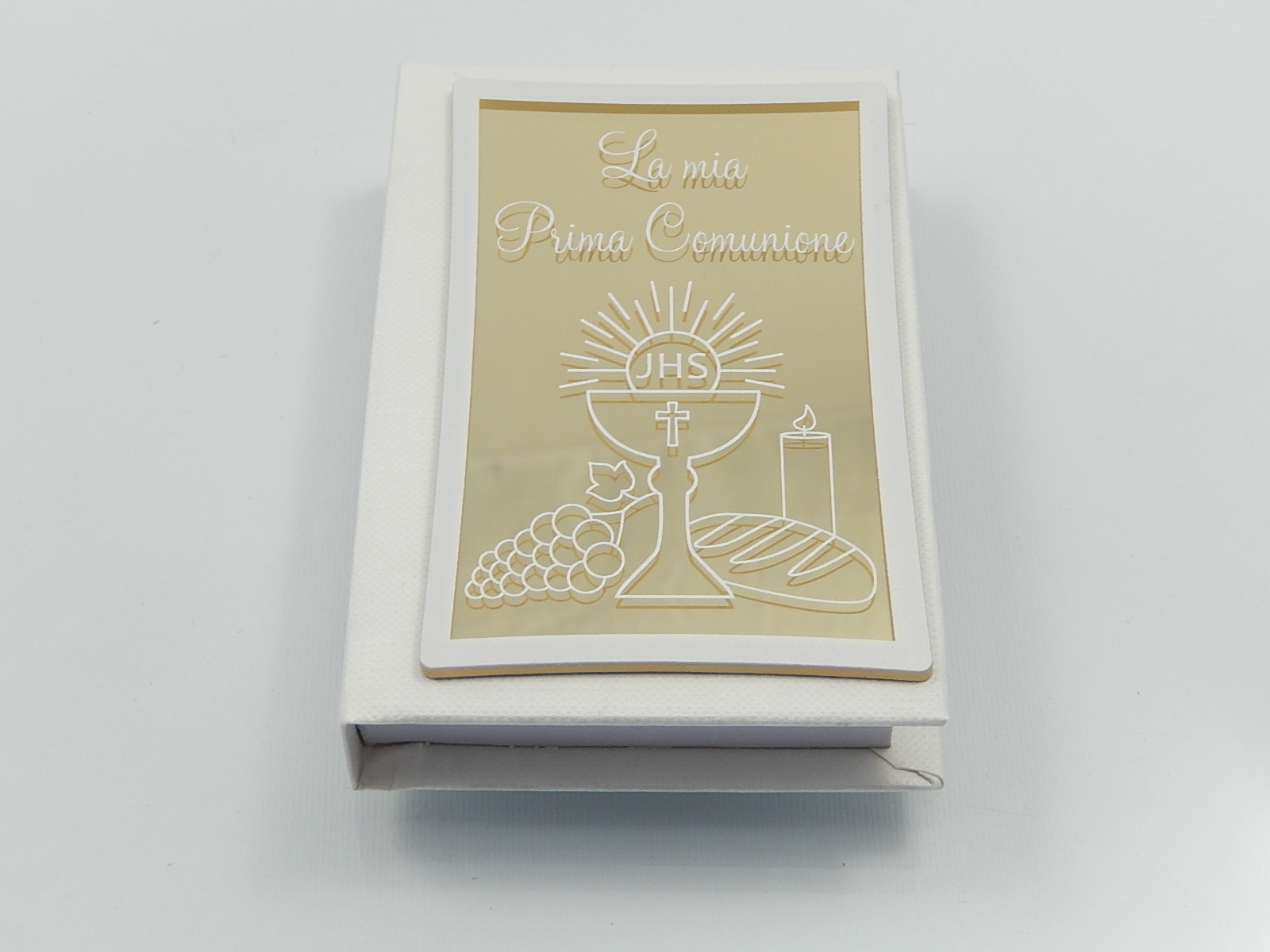 Dolcicose Vangelo oro modello comunione con inserto di plexiglass colore oro - misure cm.11x7,5 compreso di astuccio e portaconfetti in pvc