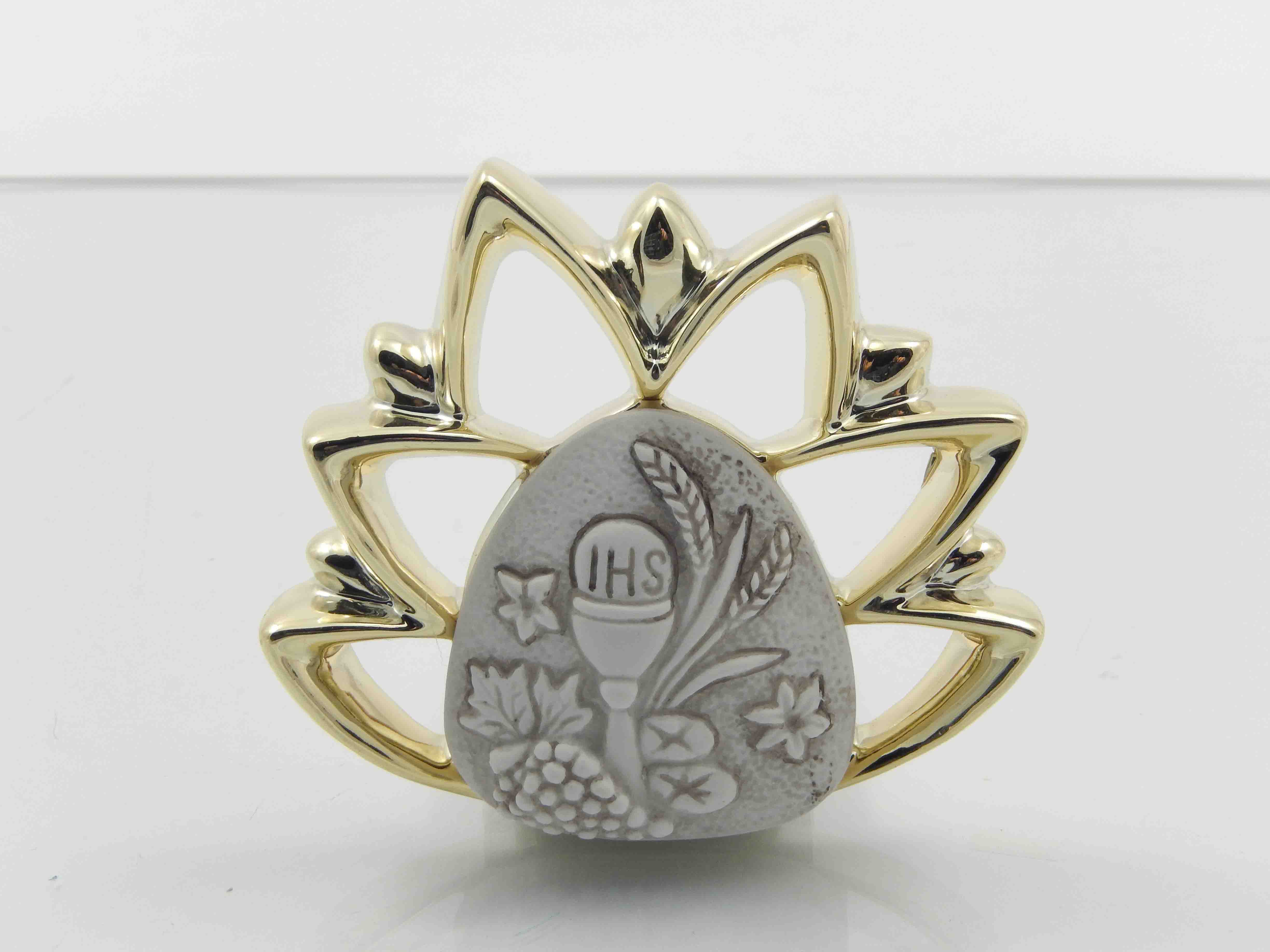 Icona calice comunione in resina bianca e oro - cm.9,5xh.9,5 - inclusa di astuccio di cartone