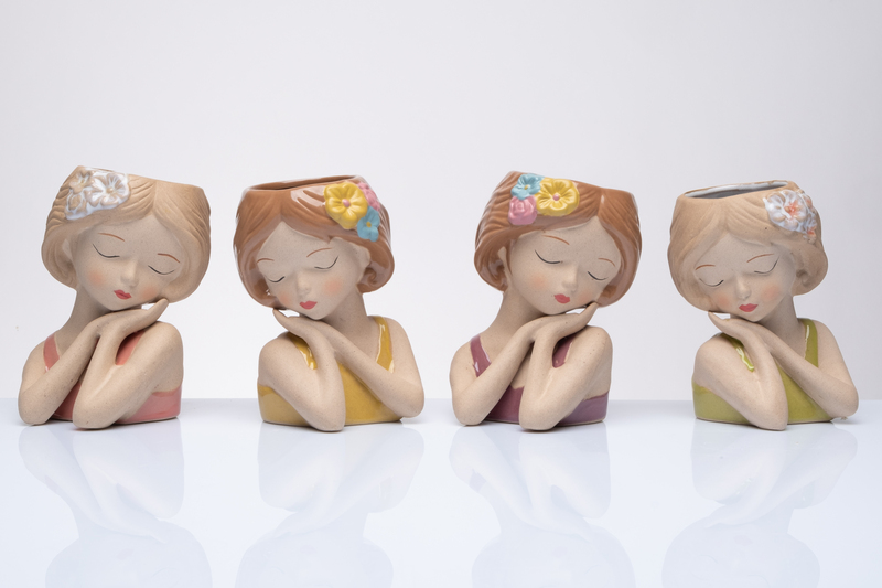 Porta piantina in ceramica modello ragazza quattro soggetti assortiti