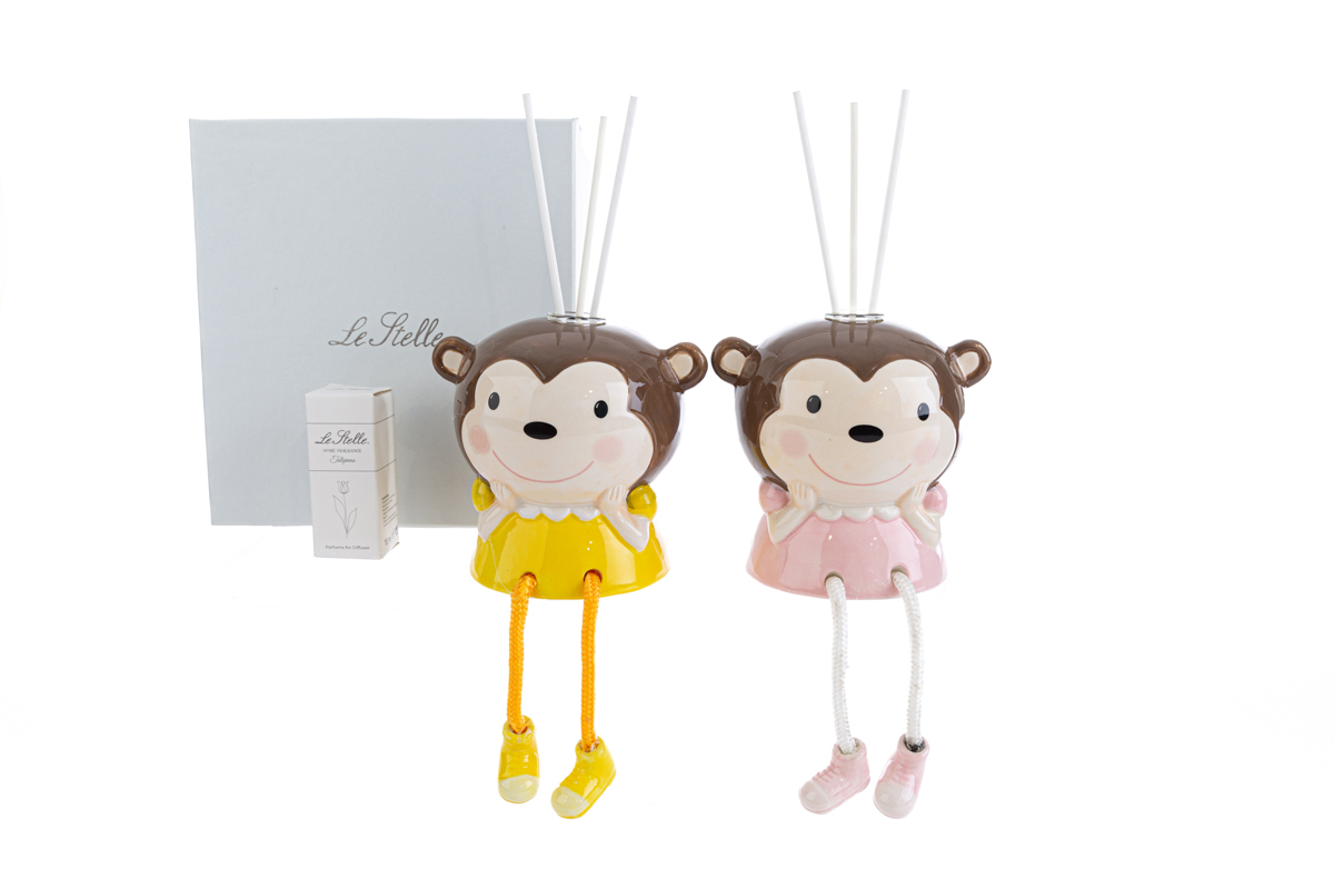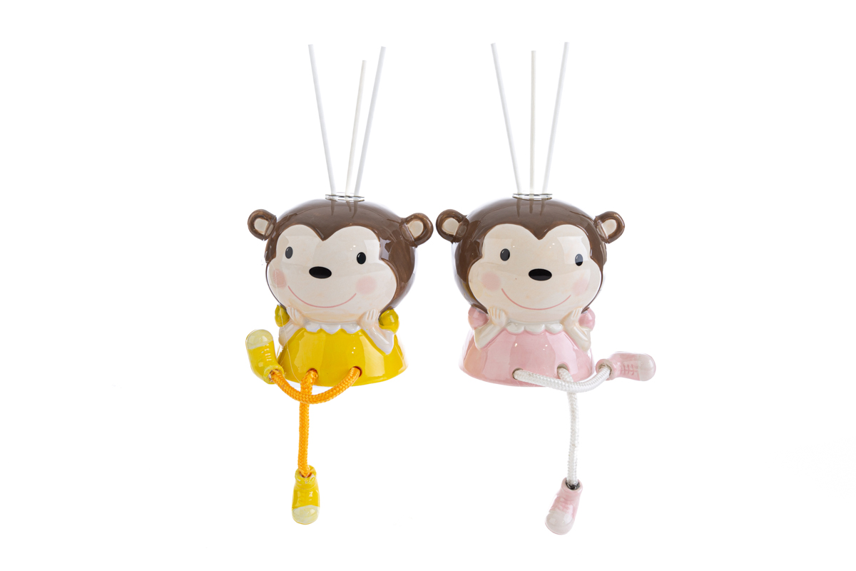 Profumatore in porcellana scimmietta 2 soggetti assortiti cm.10,5x9xh.10 incluso di essenza e astuccio regalo (Il prezzo è riferito al singolo pezzo)