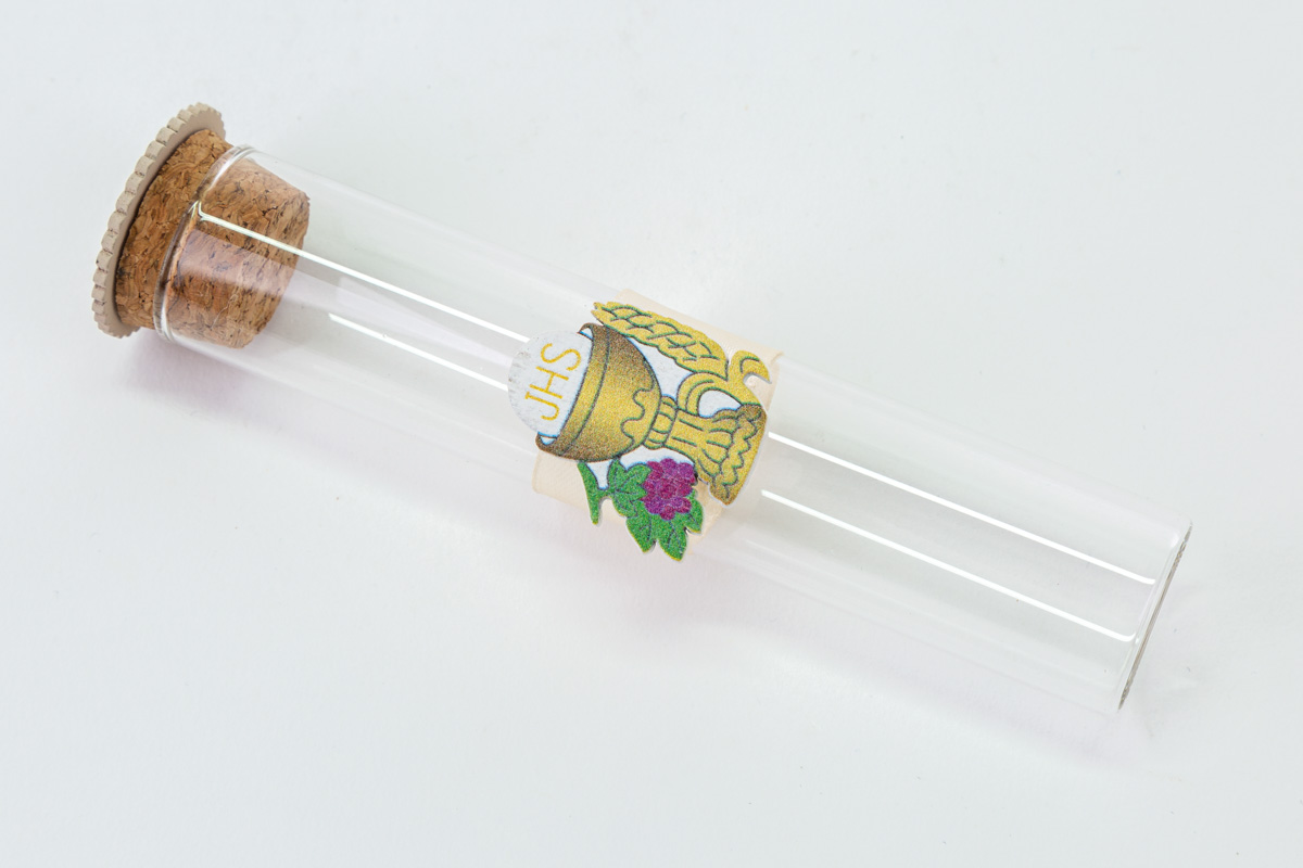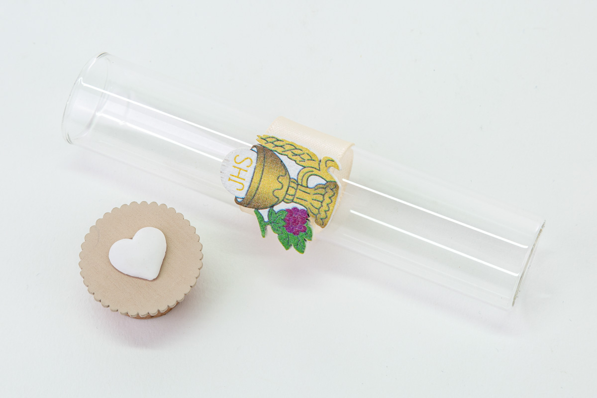 Provetta in vetro porta confetti con applicazione calice - cm.dm.2,5xh.12,5