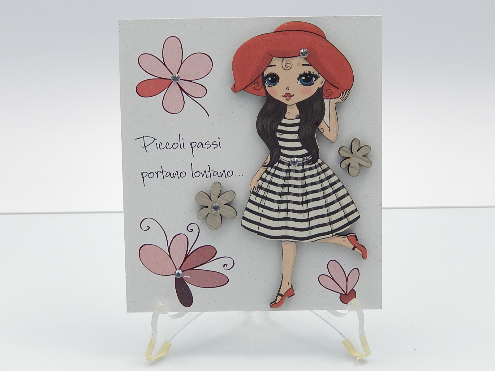 Quadretto in ceramica con stampa ed inserto di legno - cm.15xh.17 - incluso di astuccio