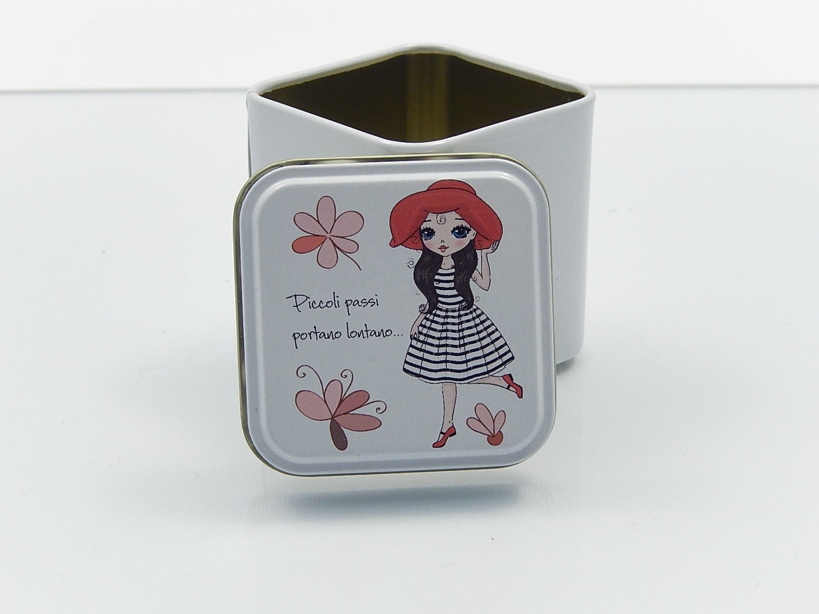 Scatolina portaconfetti in latta stampato - cm.5,6x5,6xh.5,6
