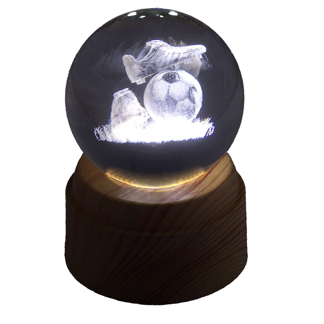 Sfera luce led usb in cristallo ø 60mm decoro Calcio - base rotativa di legno - inclusa di astuccio