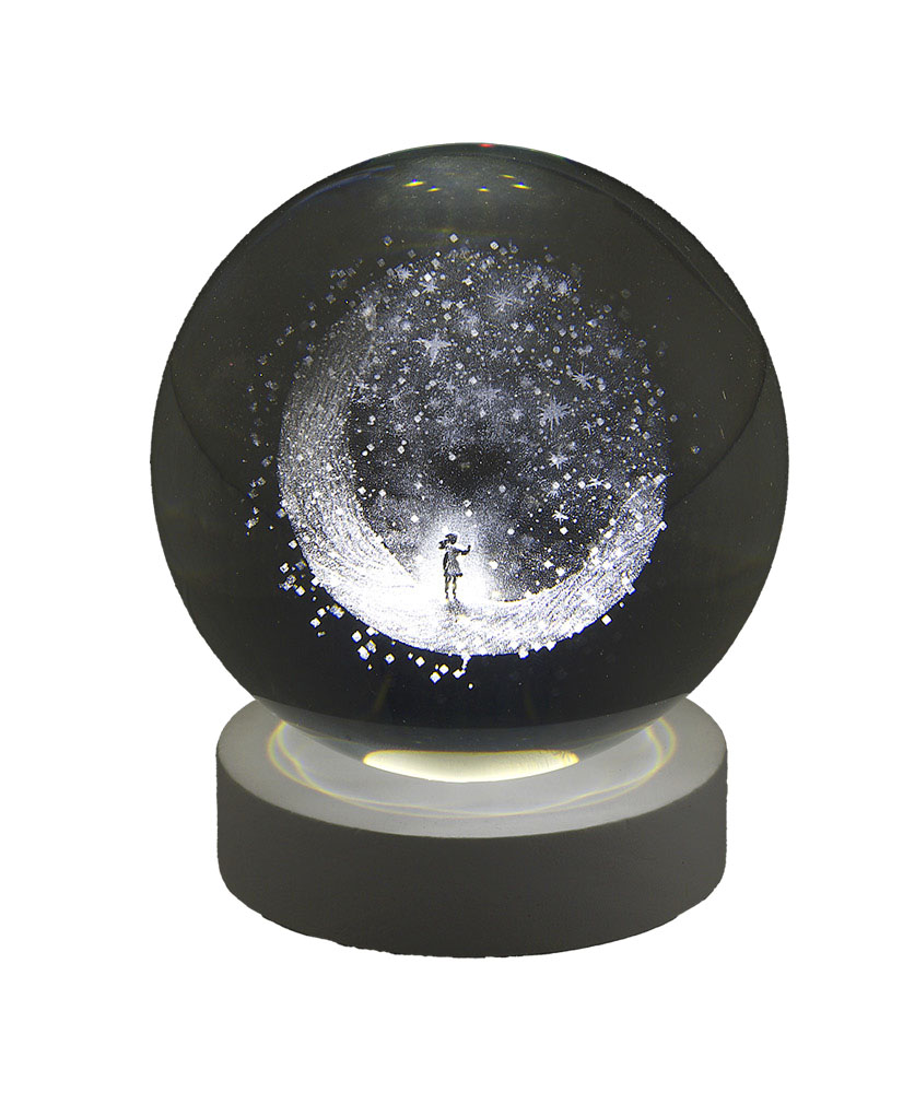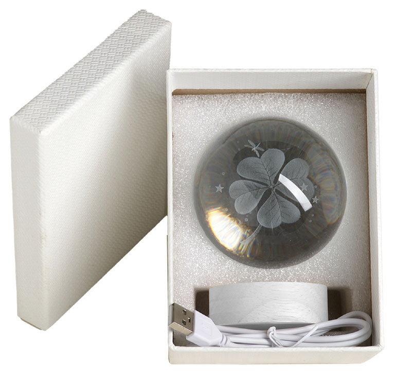 Sfera luce led usb in cristallo ø 60mm. decoro Futuro Stellato - base di legno bianca - inclusa di astuccio