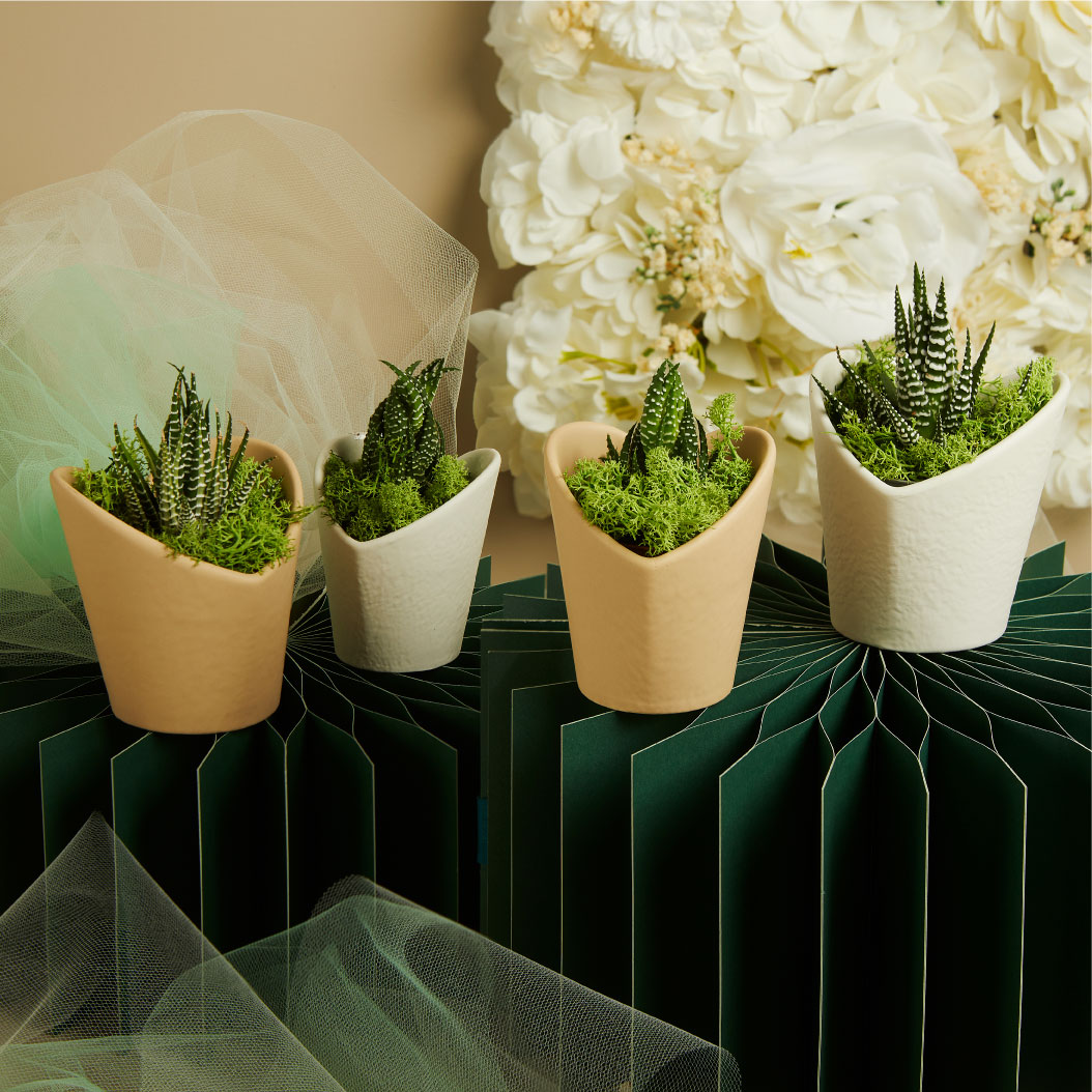 CLARALUNA-Vasetto grande bianco cuore con piantina e muschio cm.9,8x9,5x9,6 - compreso di astuccio