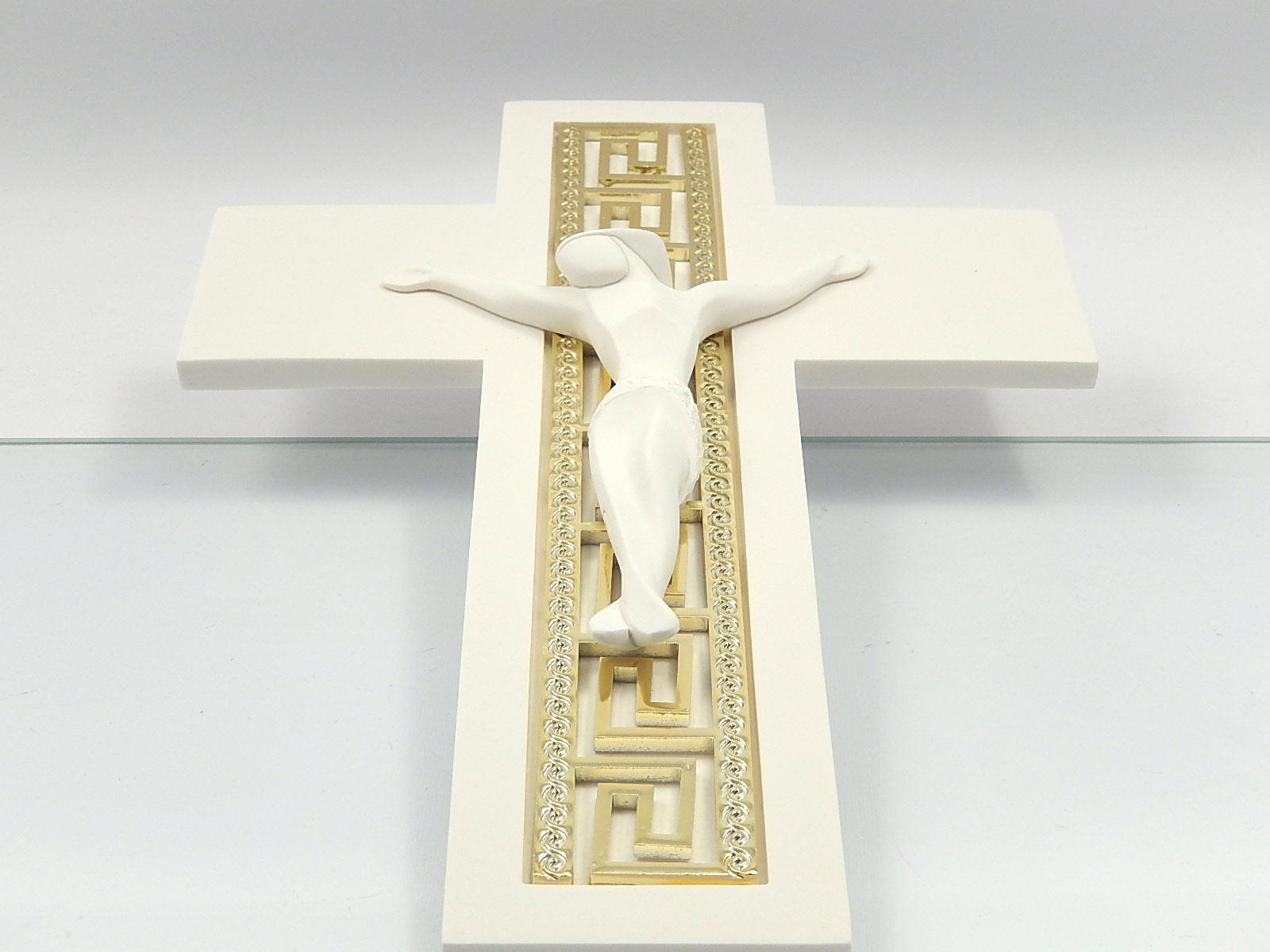 Crocifisso in resina bianca con inserto color oro