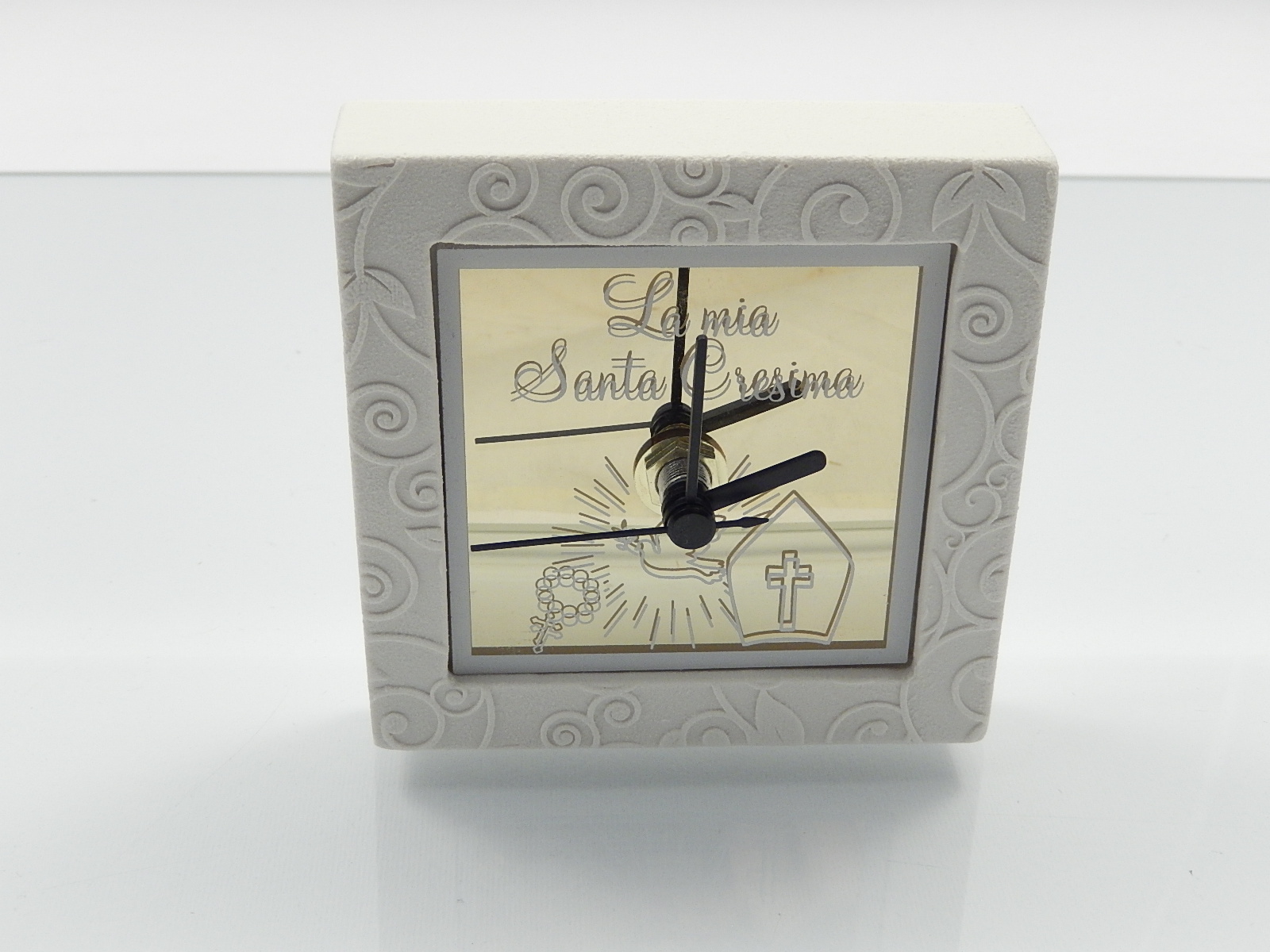 Dolcicose Orologio oro modello cresima con inserto di plexiglass colore oro - misure cm.10x10 - compreso di astuccio e portaconfetti in pvc