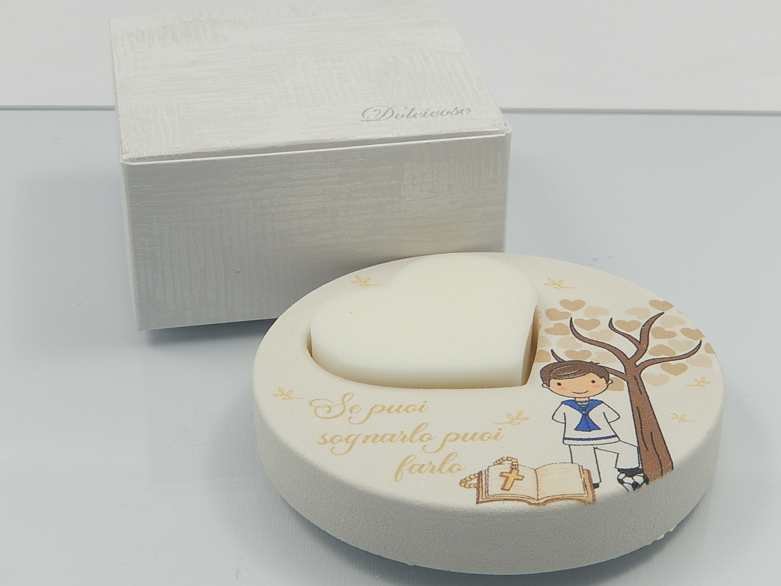 Dolcicose Portasapone in resina modello boy - misure cm.ø 11,5 - compreso di astuccio, portaconfetti in pvc