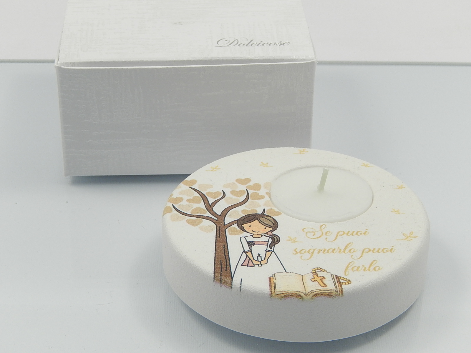 Dolcicose Tealight in resina modello girl - misure cm.ø 9,5 - compreso di astuccio, portaconfetti in pvc