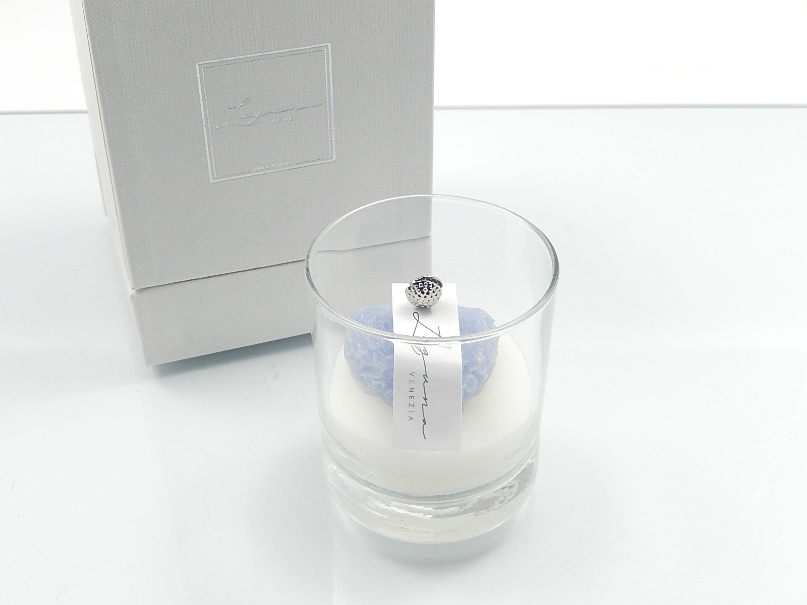LAGUNA-Candela cuore celeste con bicchiere di vetro