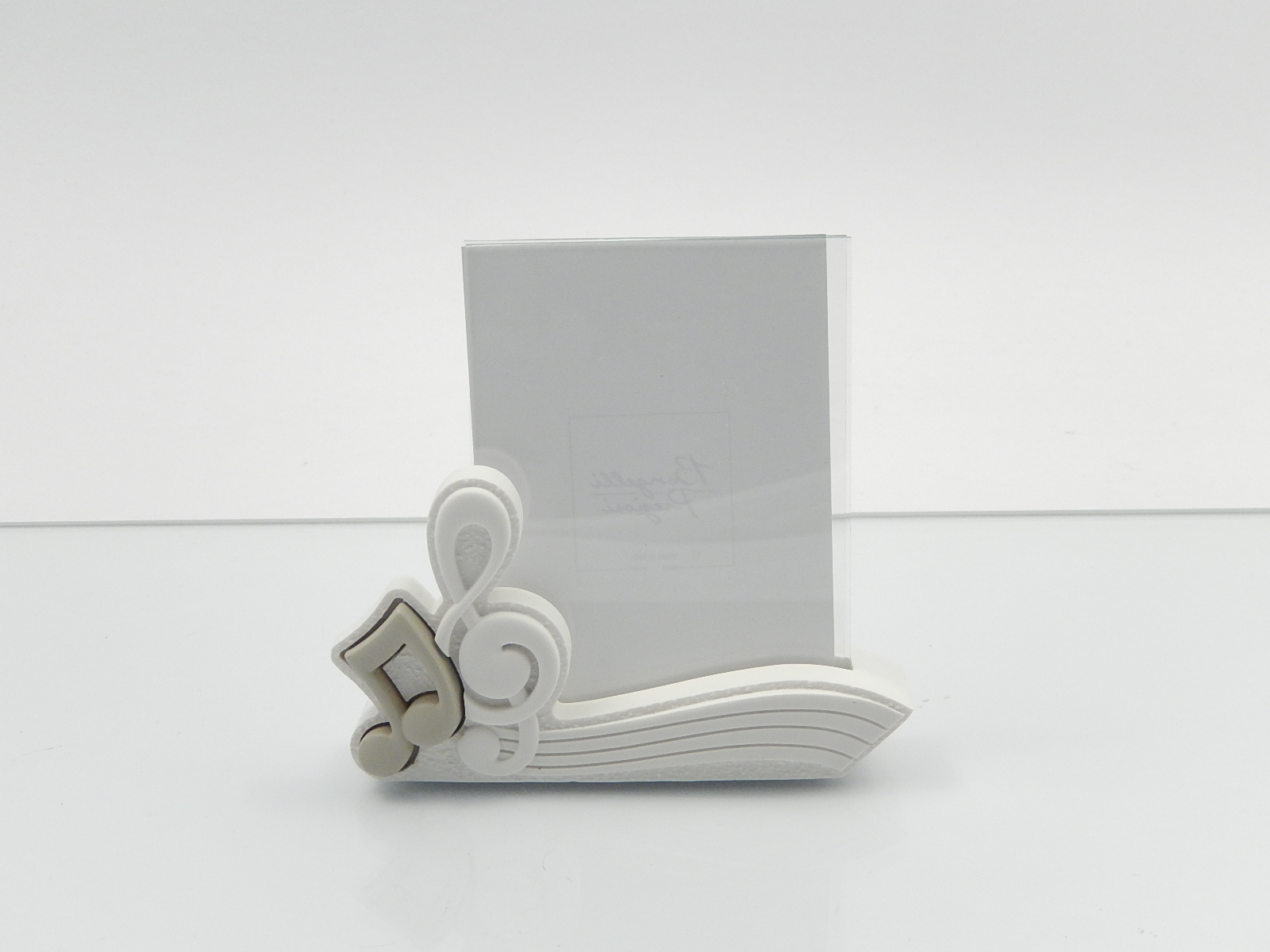 Portafoto note musicali nocciola in resina colore bianco - Misura est.cm.12xh.10 Misura int.cm 7,5xh.9,5 - incluso di astuccio regalo di cartone