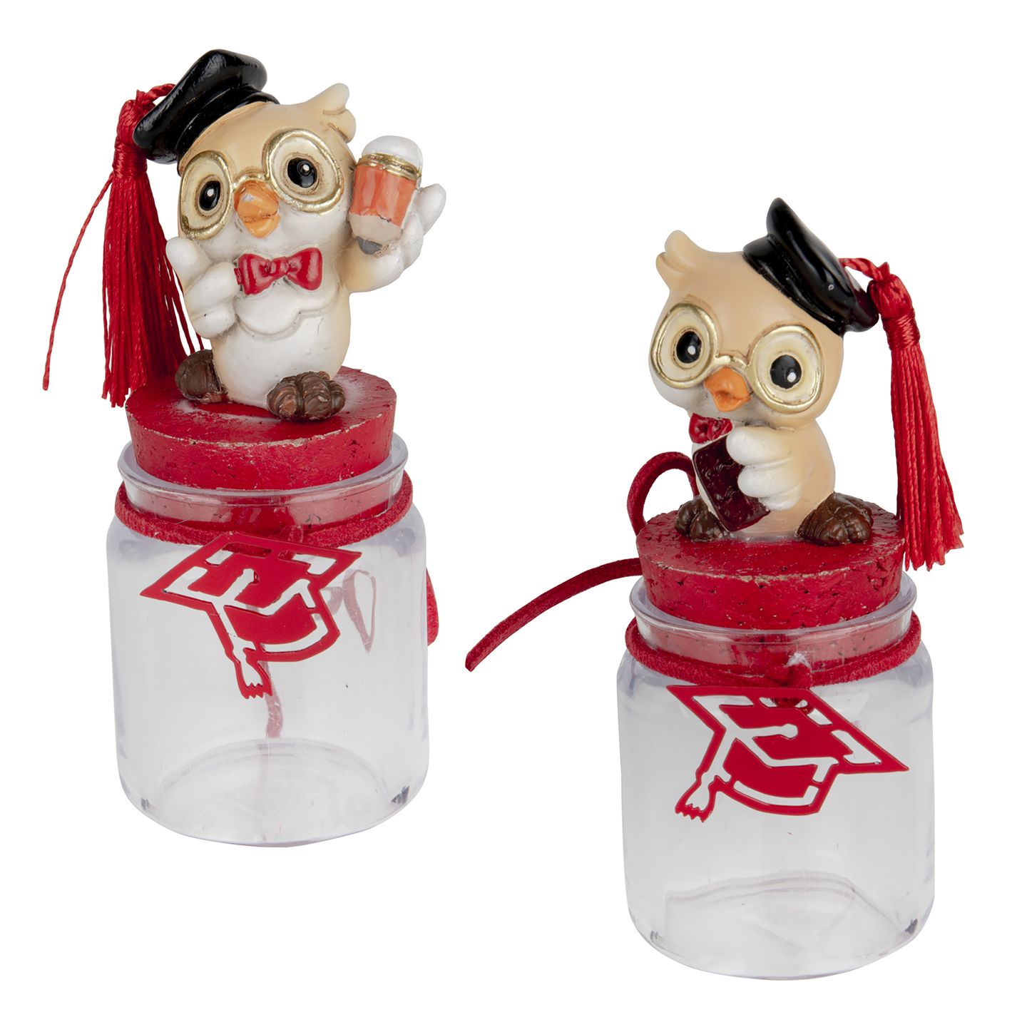 Barattolo in vetro con gufo in resina 2 pose assortiti