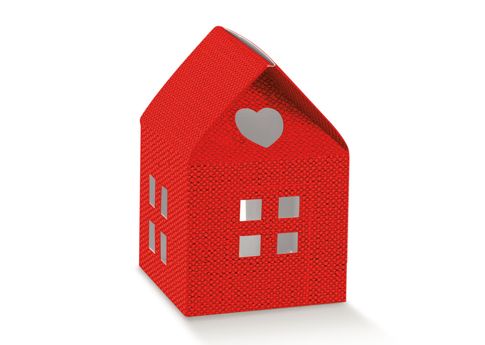 Scatola casetta in cartoncino teso, con finestre sui lati, per confezionare confetti, prodotti dolciari, piccoli oggetti cm.5,5x5,5xh5