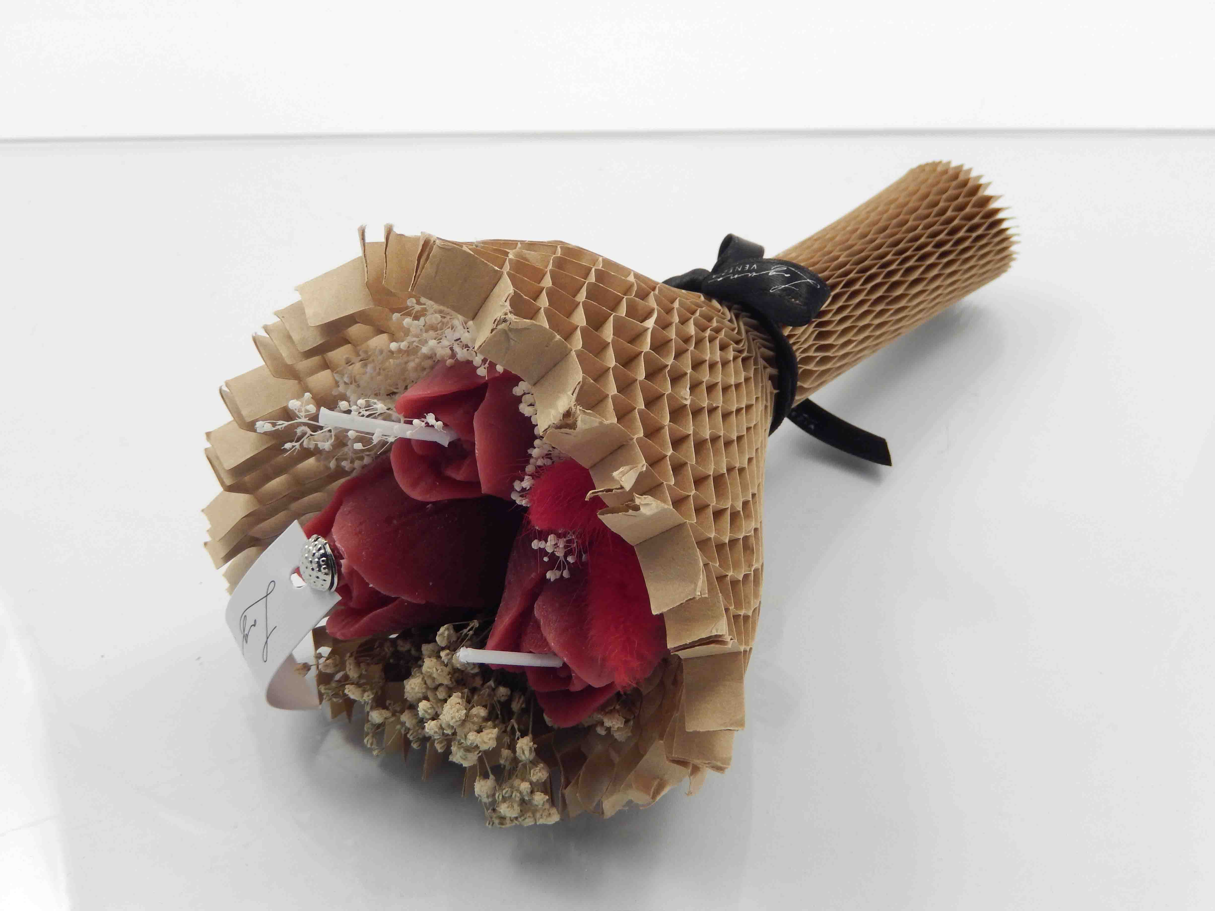 Bouquet in rete colore avana con tre tulipani candela rosso - lung.cm.20