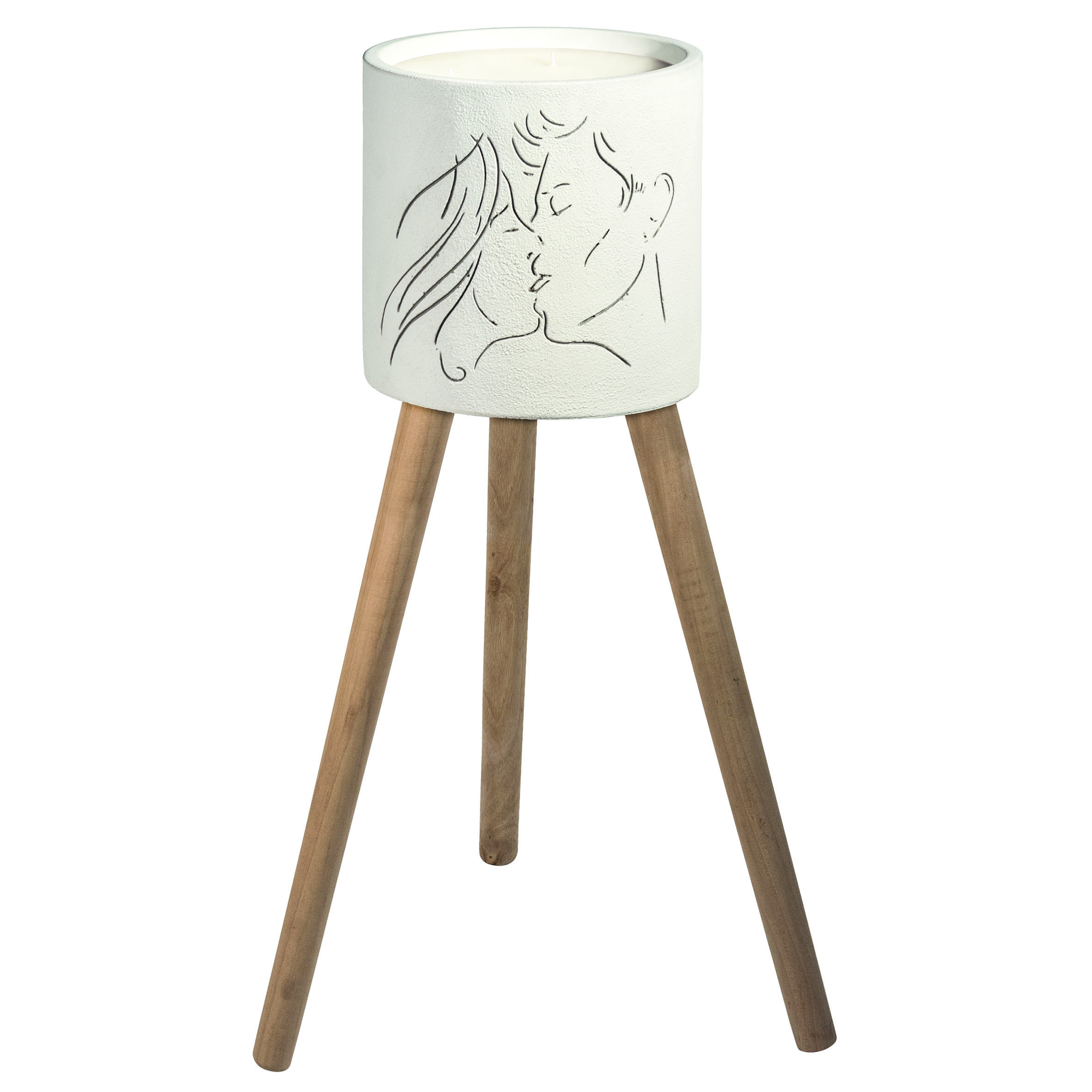 Candela grande in ceramica coppia di sposi con trepiede in legno