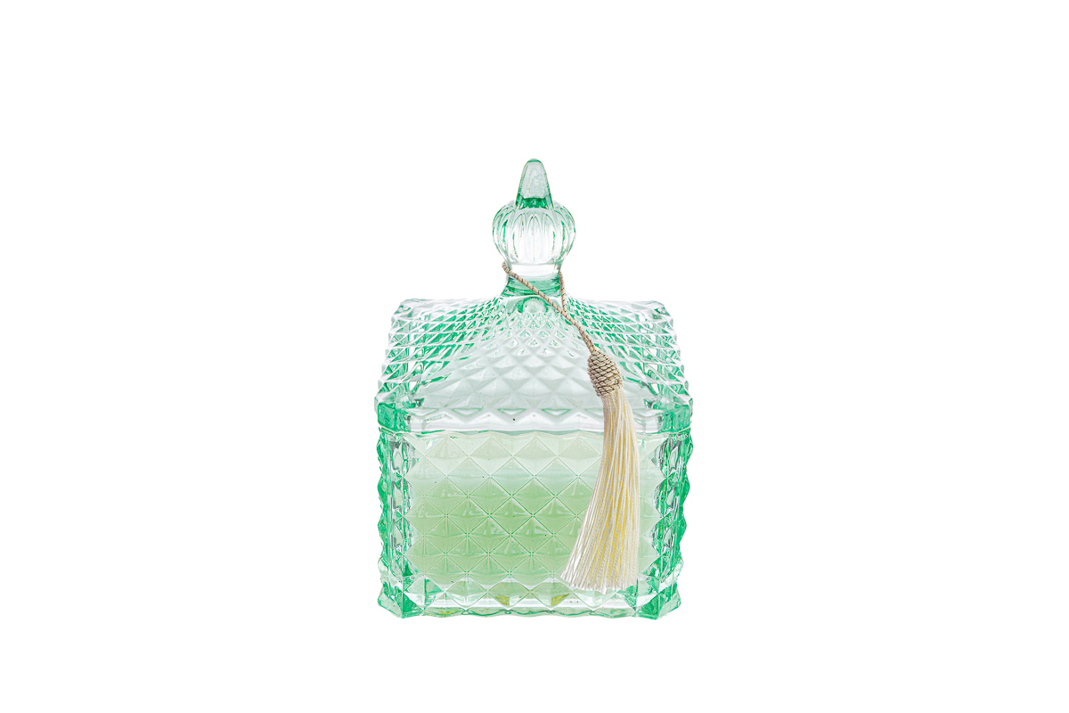 Candela profumata in vetro colore verde - cm.8x8xh.12