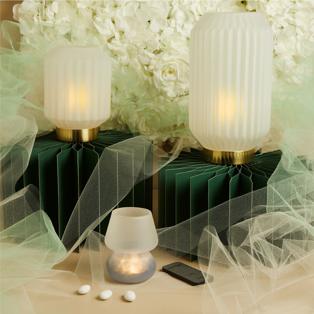 CLARALUNA-Lampada led bianca con telecomando - cm.8x11 - inclusa di astuccio e porta confetti  - batterie incluse